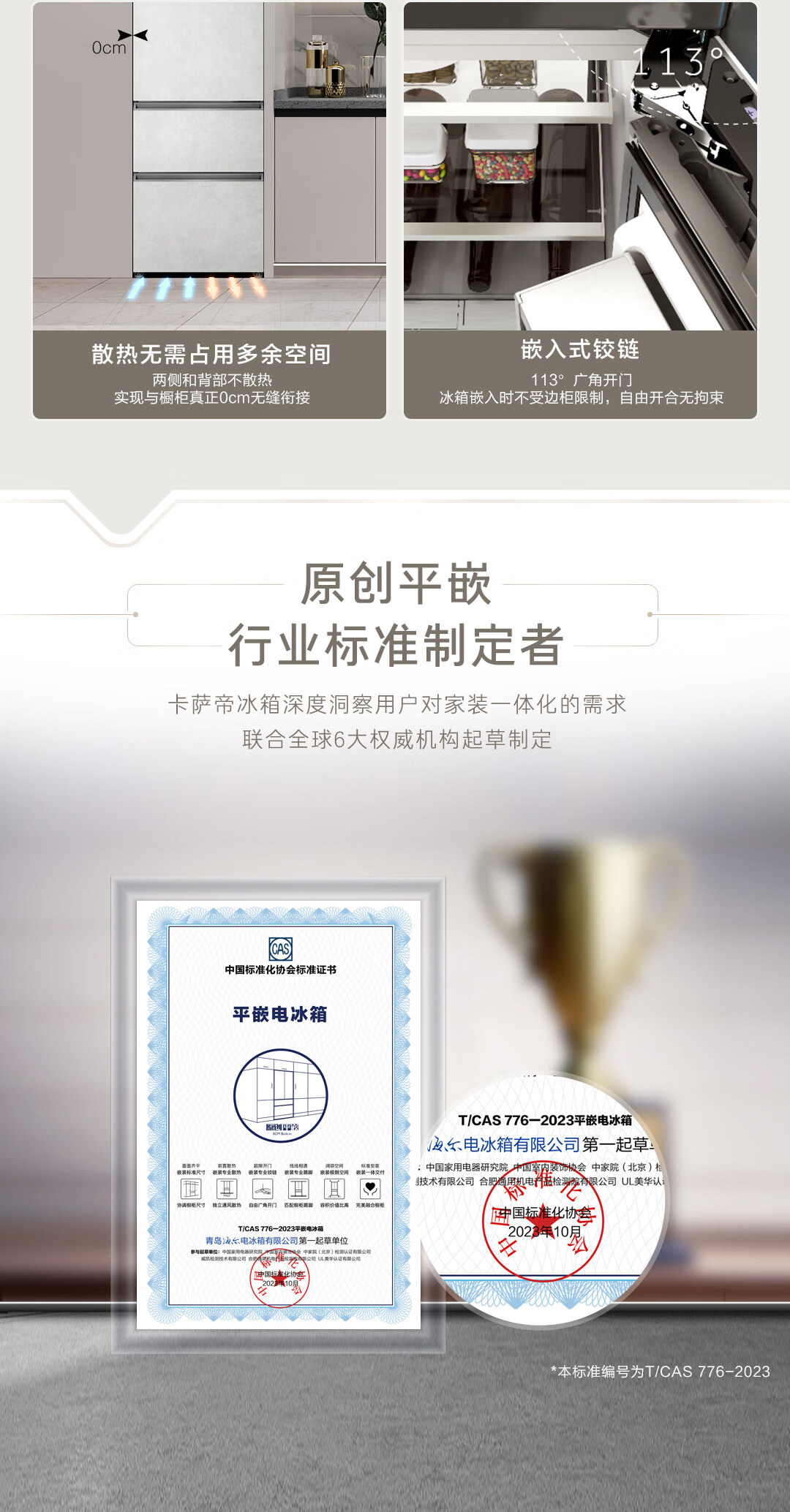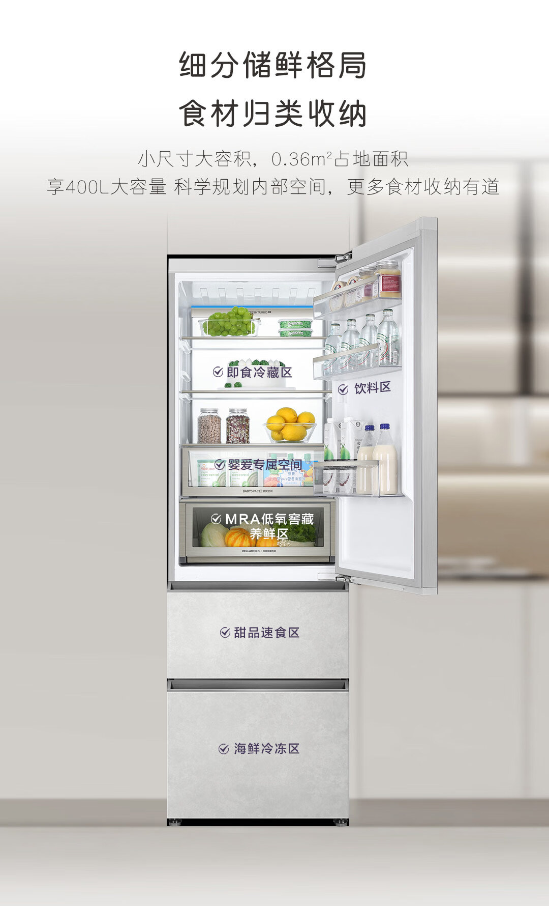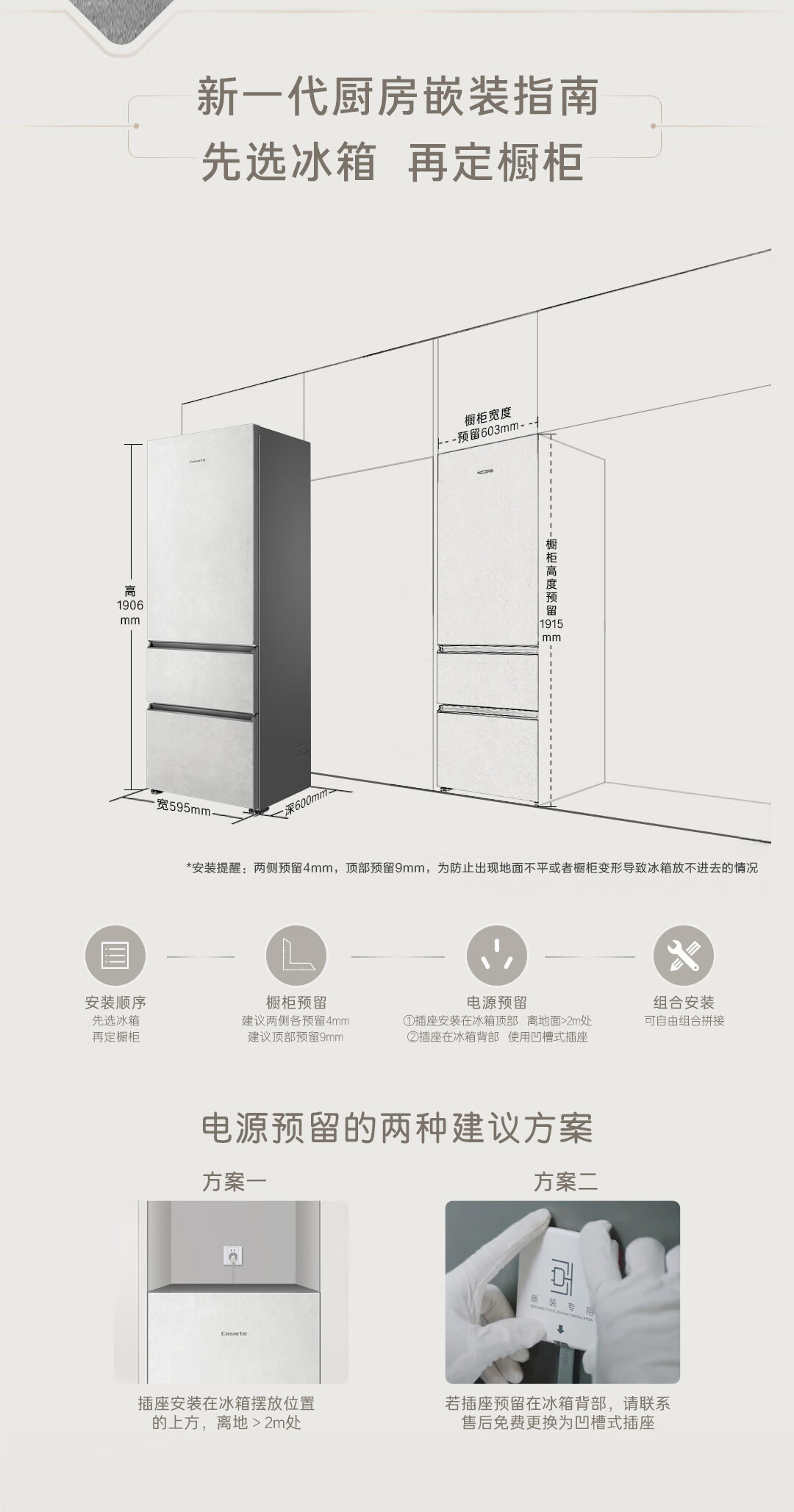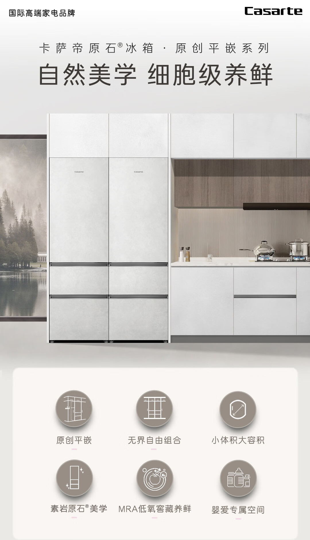 卡萨帝(Casarte)【致境】400升原石原创平嵌三开门超薄嵌入式双系统小型国家补贴20%冰箱BCD-400WLCI3M4GDU1