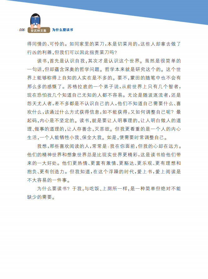 为什么要读书安武林文集fb初中七八九年级课外书学生阅读书籍图书 上海大学出版社