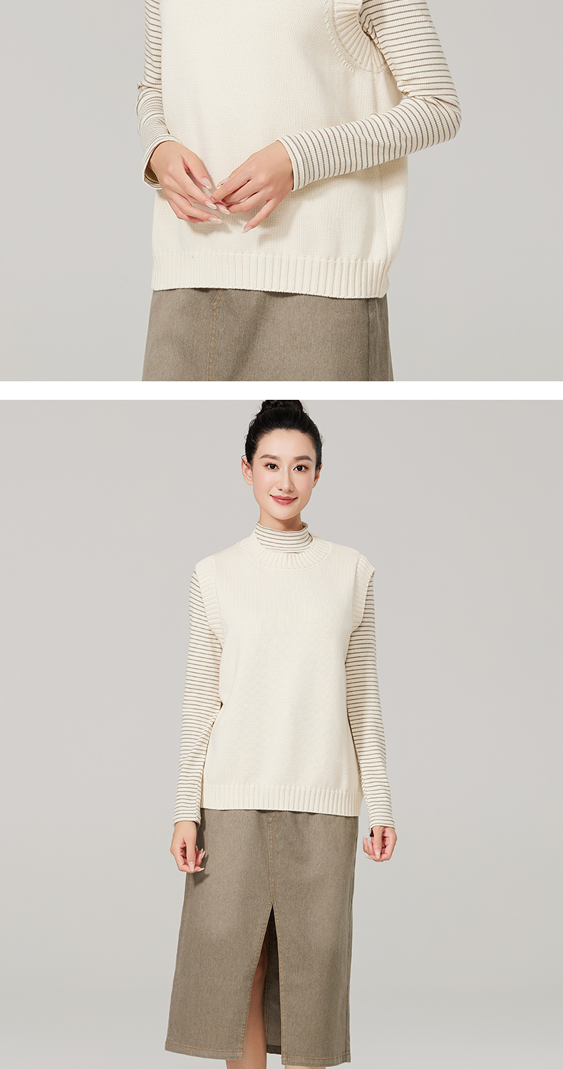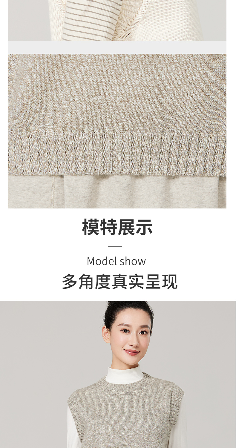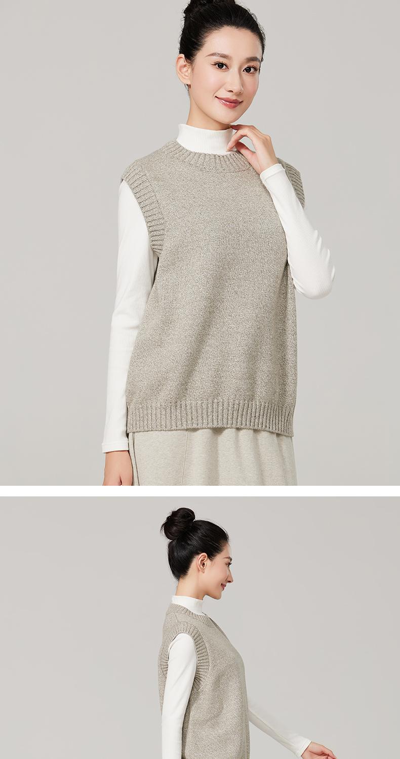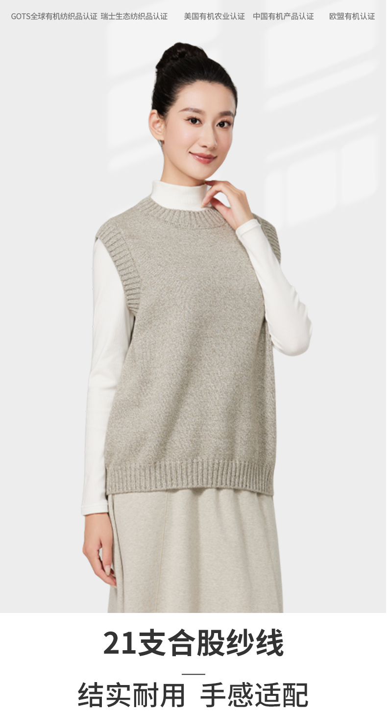 素道有机棉针织圆领背心纯棉A类女士线衣 套头线衣马甲无袖针织衫