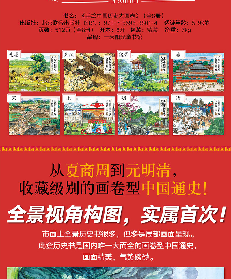 现货精装 手绘中国历史大画卷 全套8册 一二三四年级阅读课外书必读写给儿童的中国历史从北京猿人到清帝退位儿童历史百科绘本正版