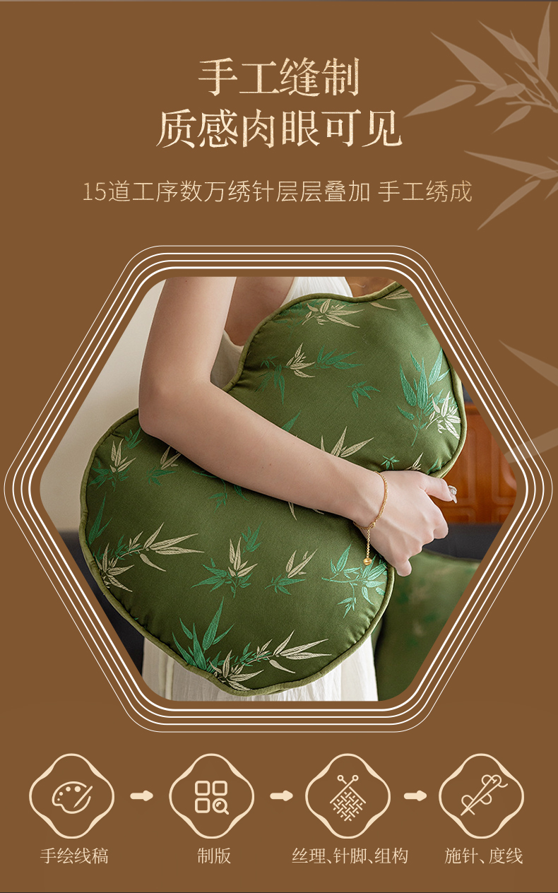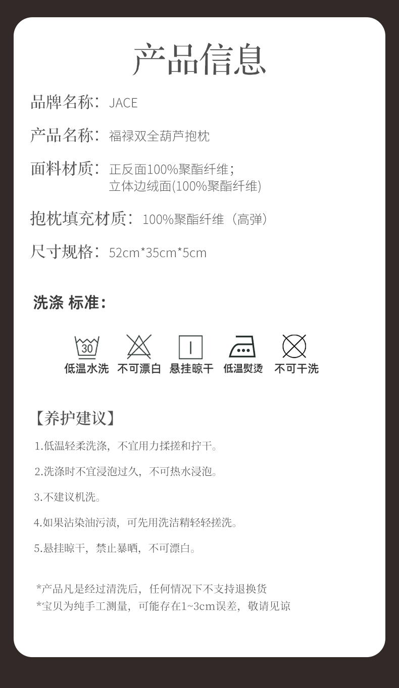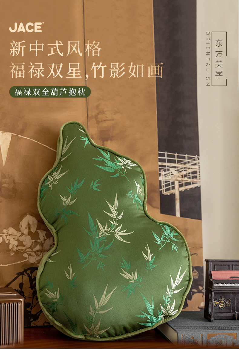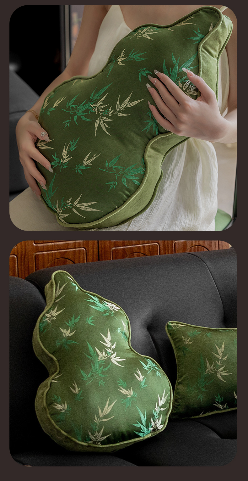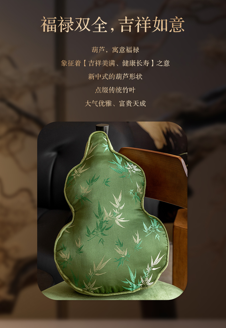 【葫芦抱枕】现货,72小时内发出,JACE福气葫芦刺绣抱枕,福禄双全,吉祥如意,刺绣手工缝制,大小52cm*35CM*5CM