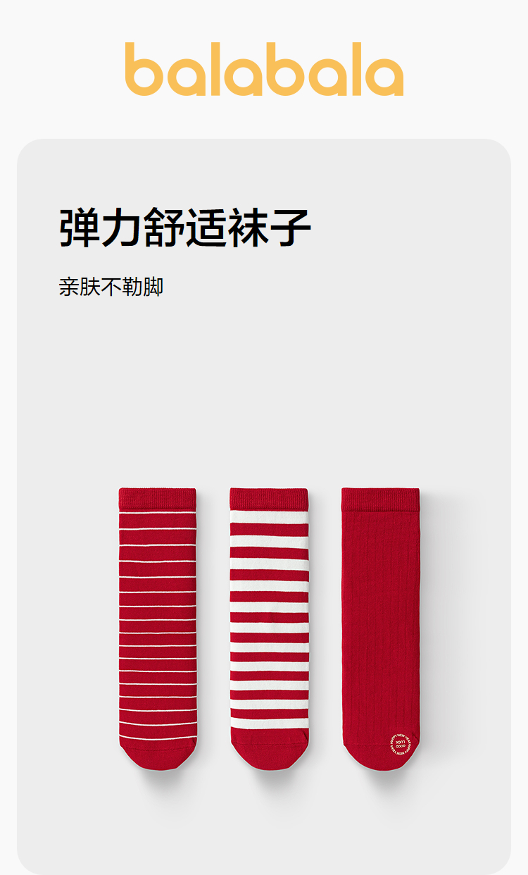 【balaOne】巴拉巴拉儿童袜子春男女童棉袜提花中筒袜百搭三双装