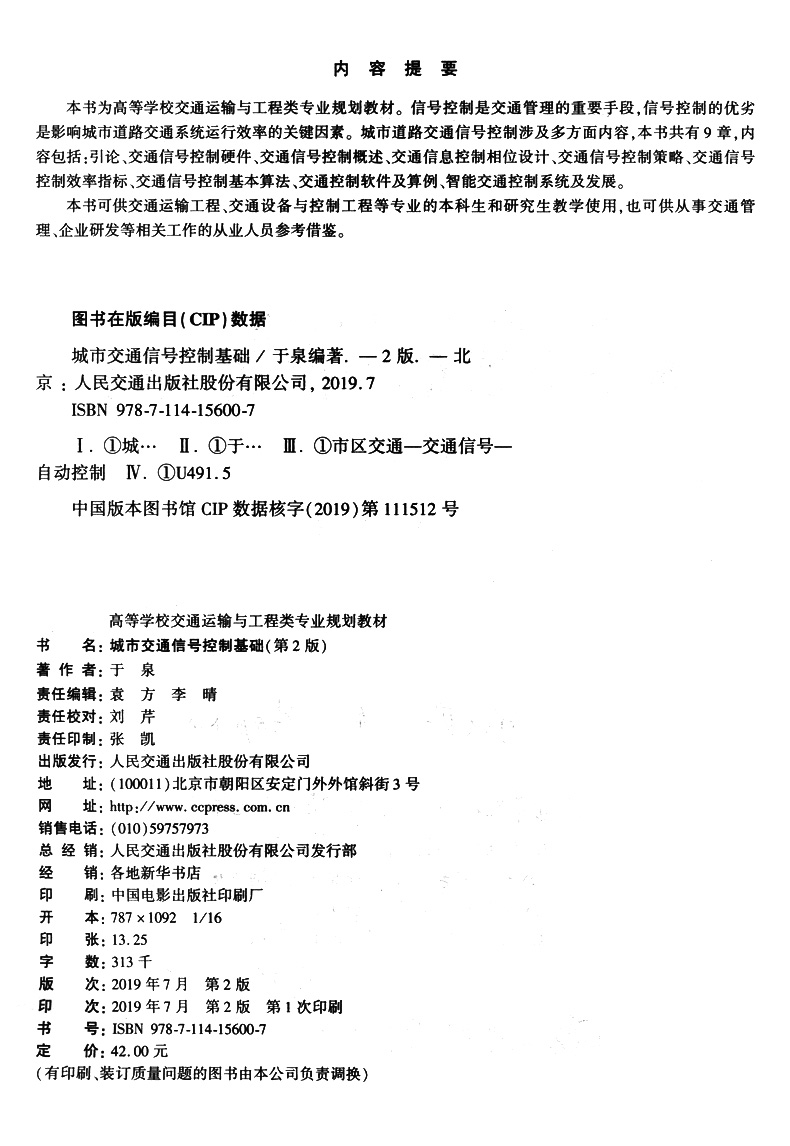 书名:城市交通信号控制基础(第2版)