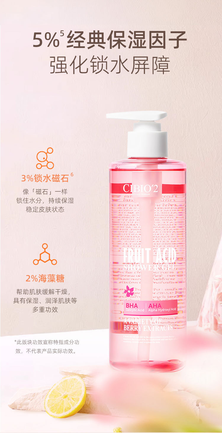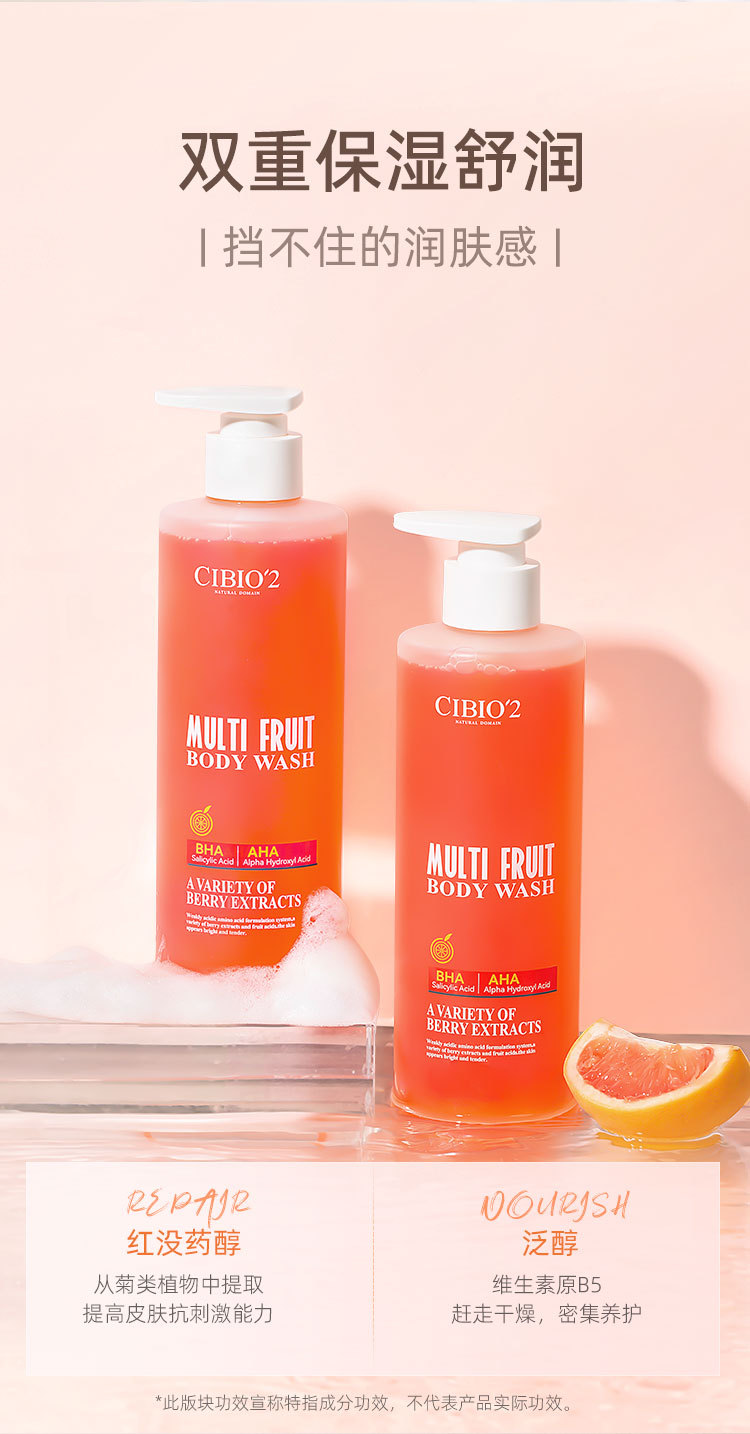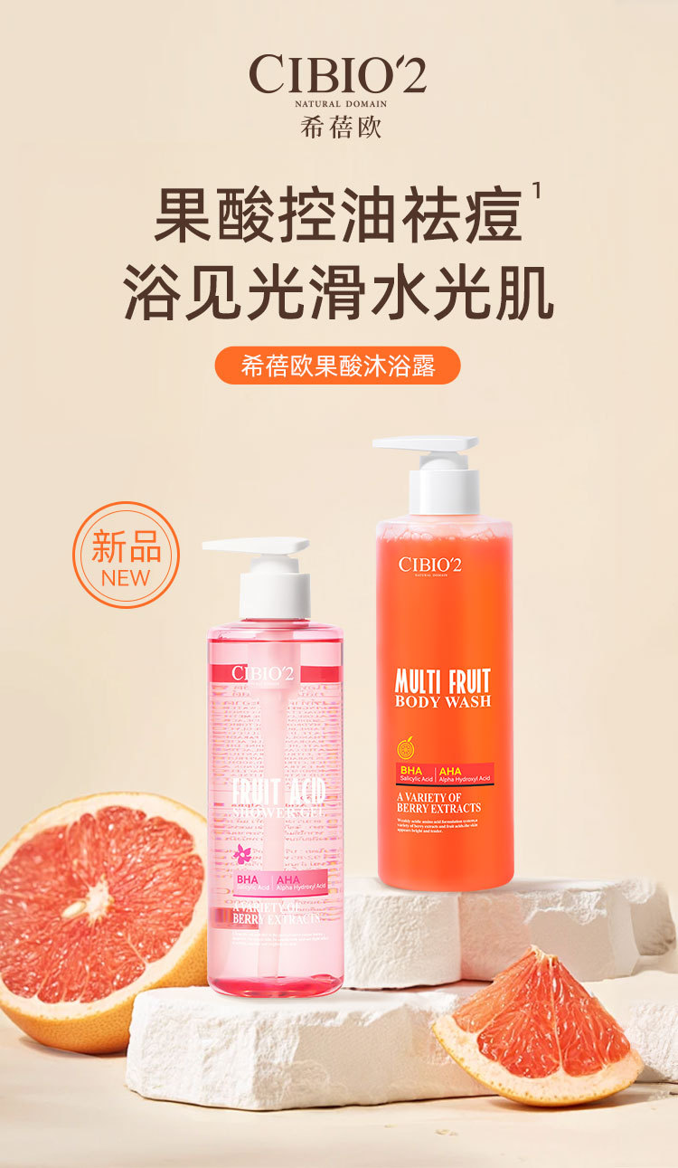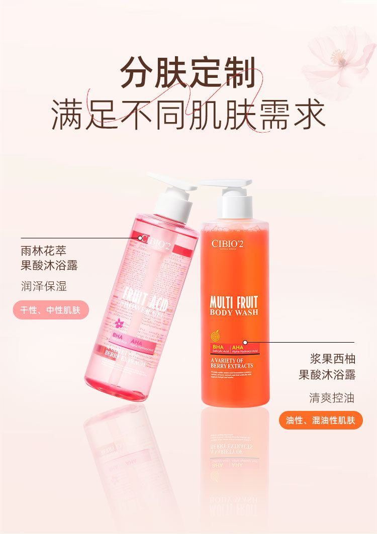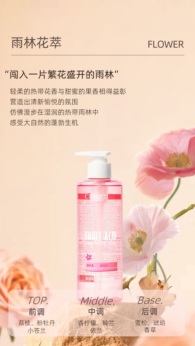 【温和不刺激❗️双重保湿舒润】CIBIO2花萃取果酸沐浴露 持久留香净肤除菌控油去死皮沐浴液400mL。jb