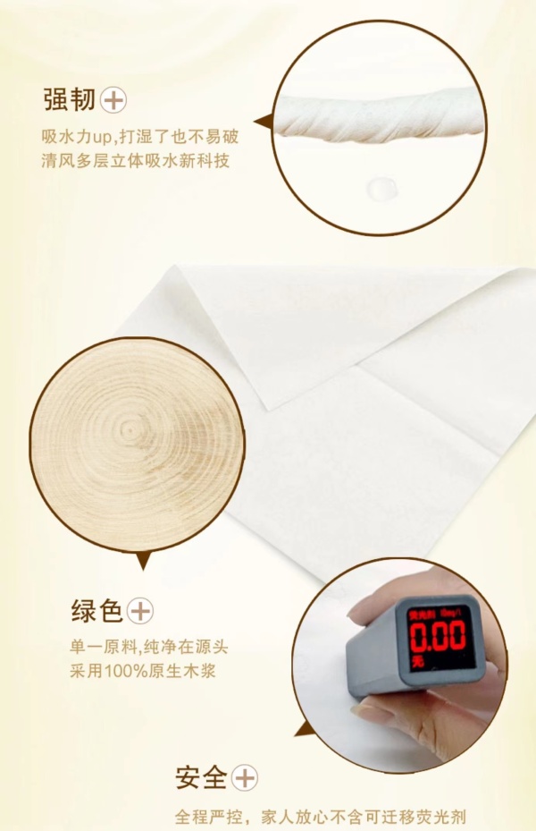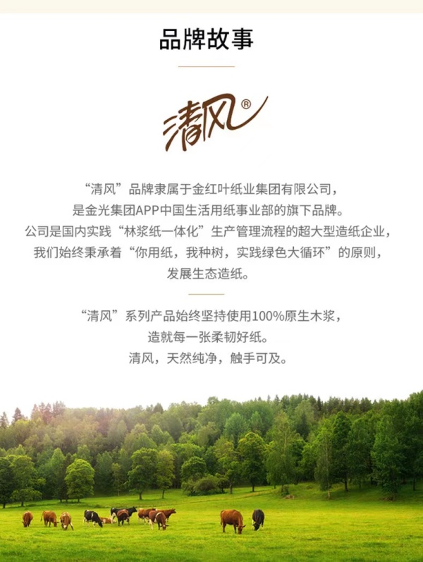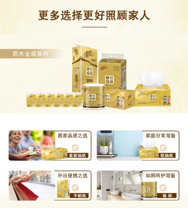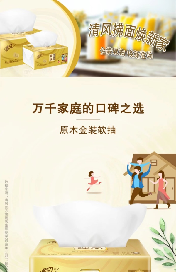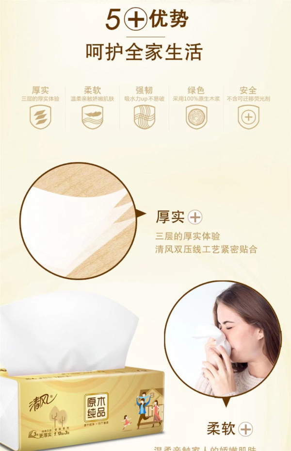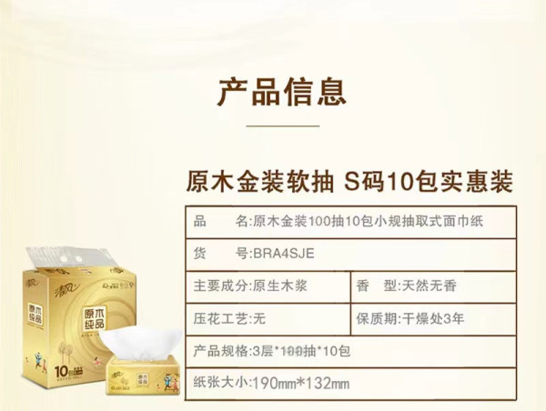清风 原木金装系列3层100抽10包软抽面巾纸