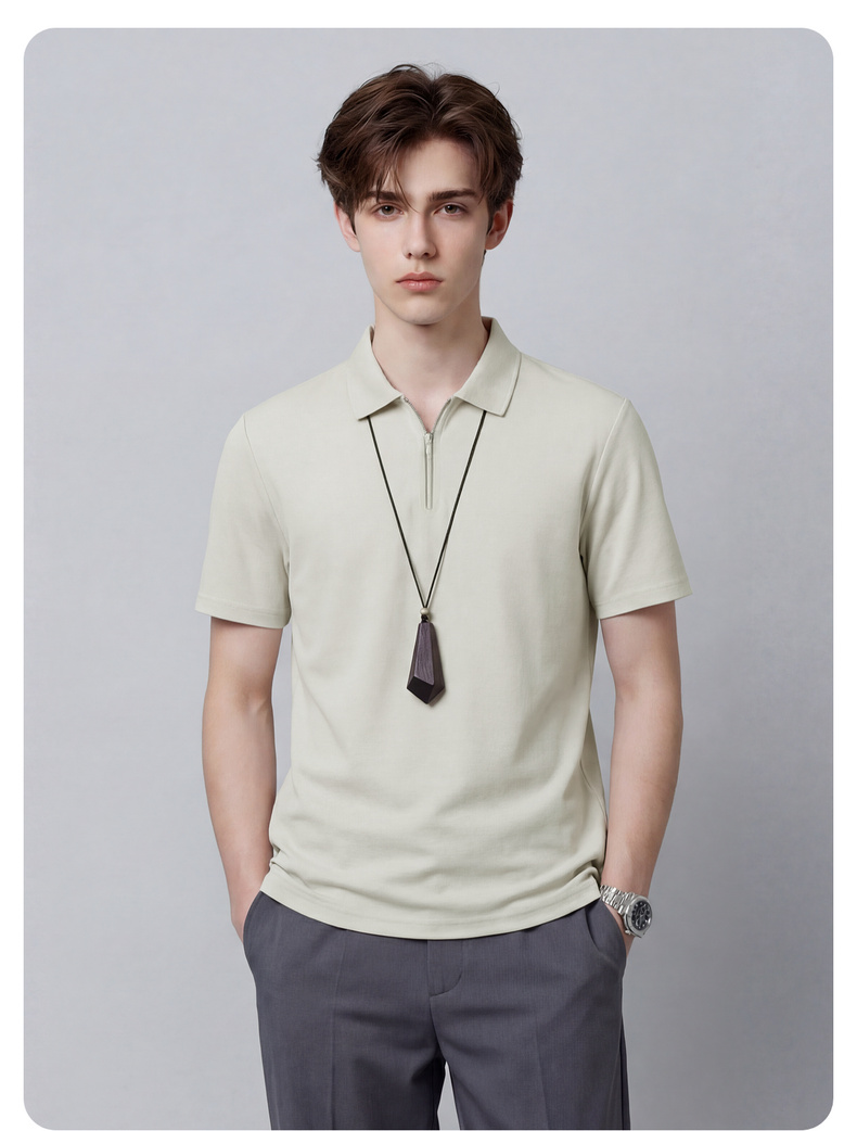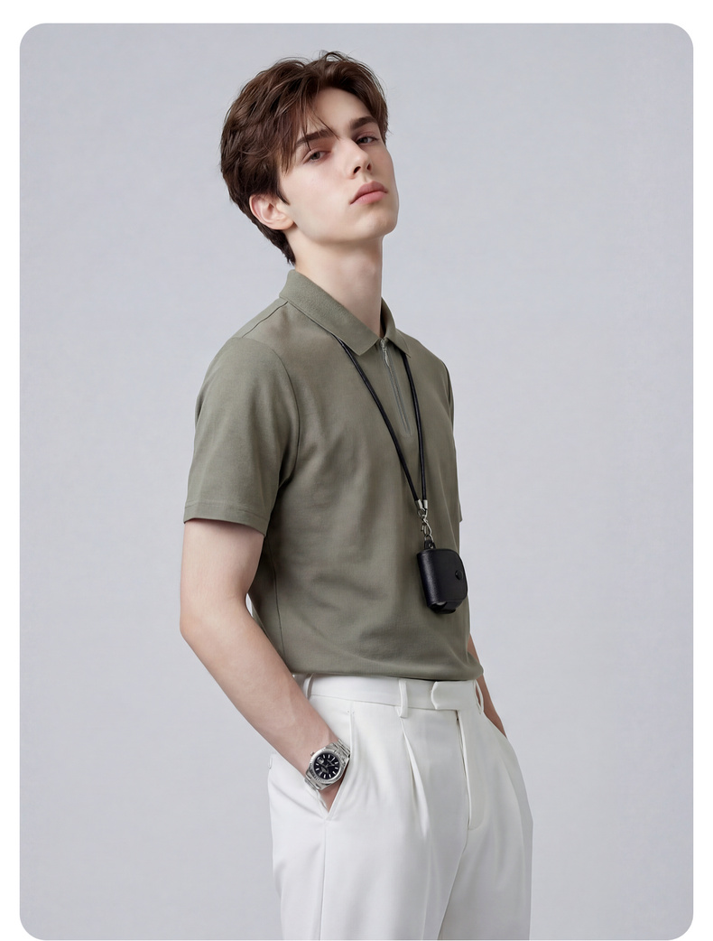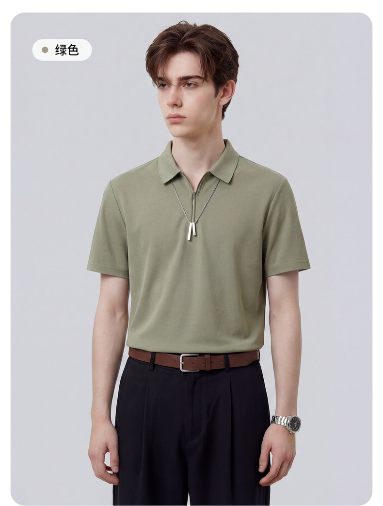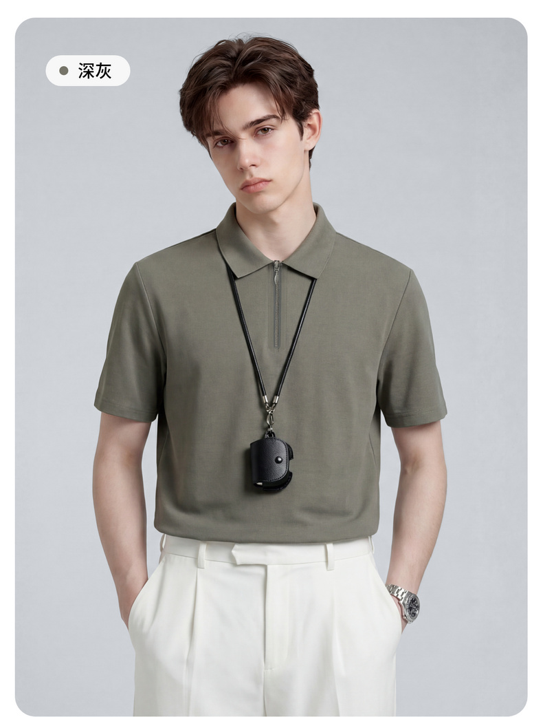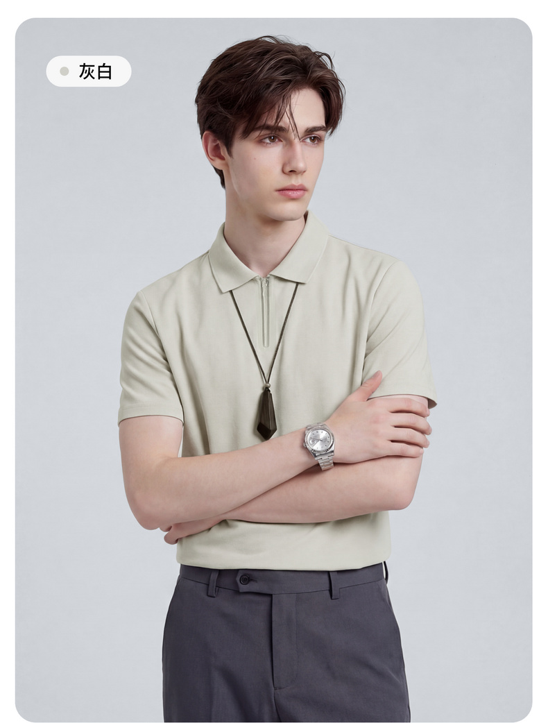 【含桑蚕丝】圣得西男50S纱线针织POLO衫2025秋季款经典翻领上衣
