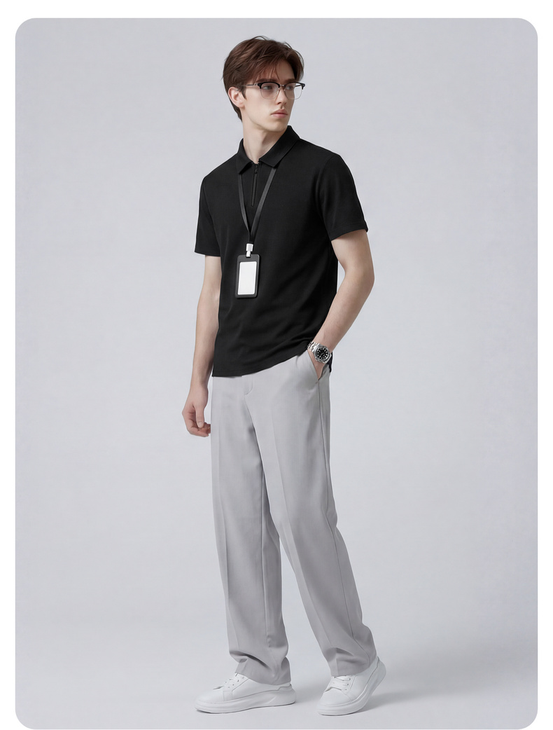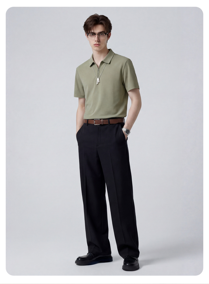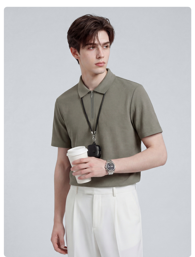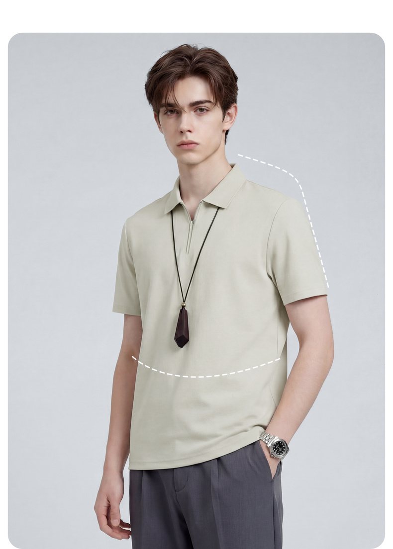 【含桑蚕丝】圣得西男50S纱线针织POLO衫2025秋季款经典翻领上衣