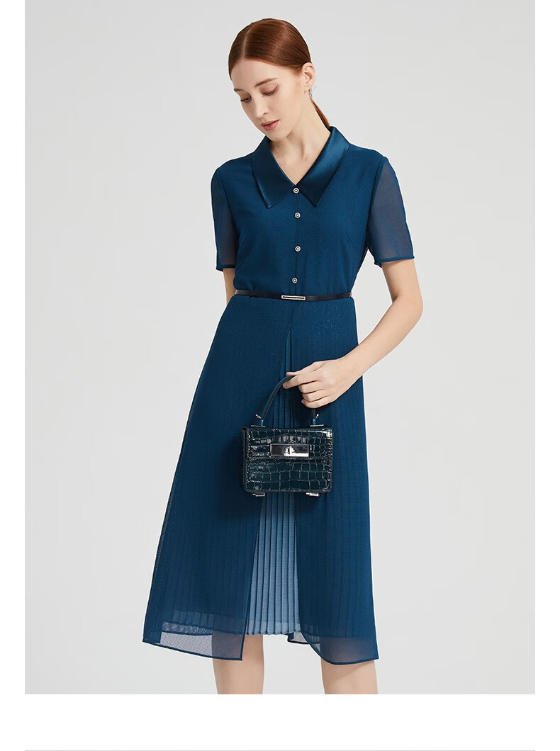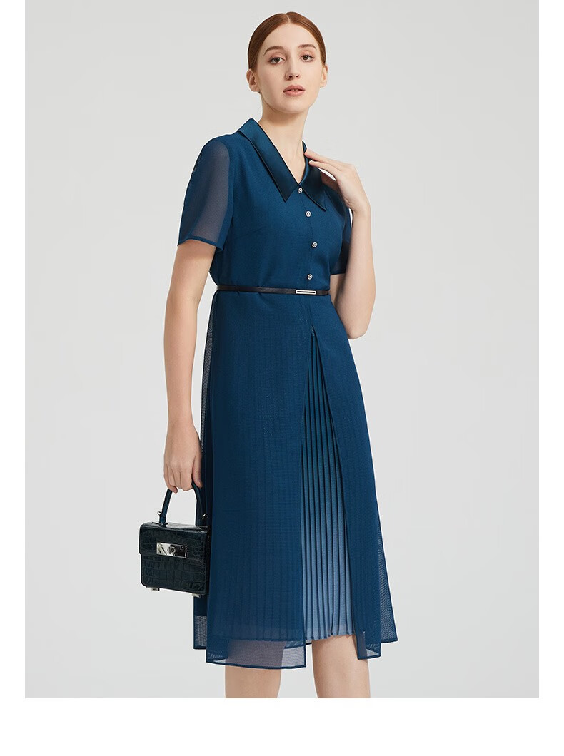 皮尔卡丹女装夏季新款复古优雅修身连衣裙P2215D2131G0