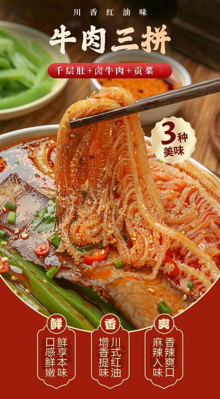【舌尖上的美味❗冷吃红油千层毛肚】甄选新鲜原料制作,肉质饱满Q弹口感鲜嫩,麻辣入味香辣爽口,凉拌即食免煮熟食川渝麻辣零食L