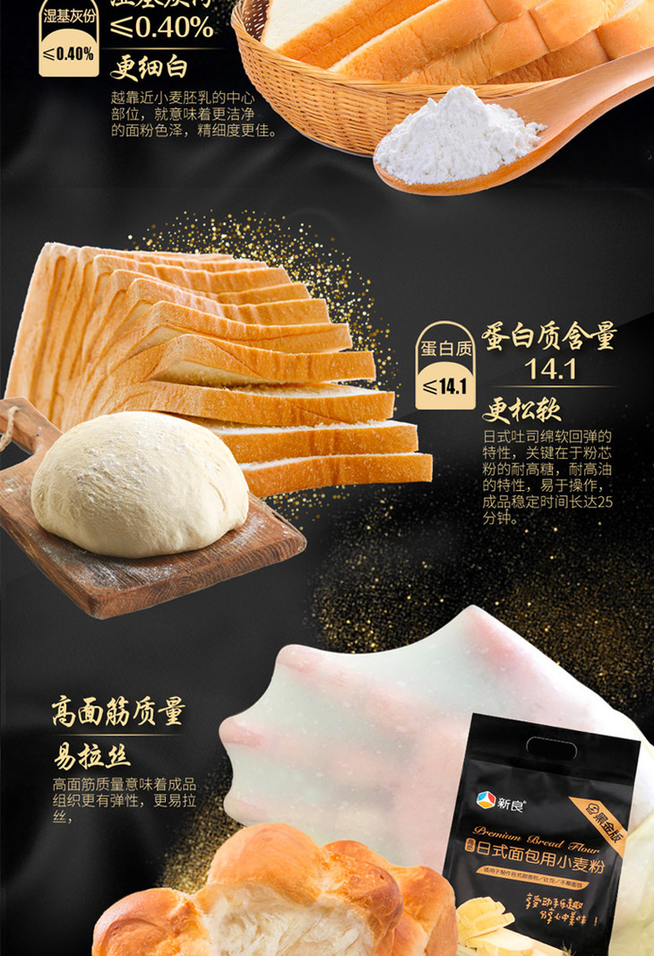 新良高筋日式面包用小麦粉2.5kg 高筋面粉 家用面包粉 烘焙原料