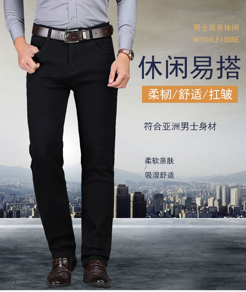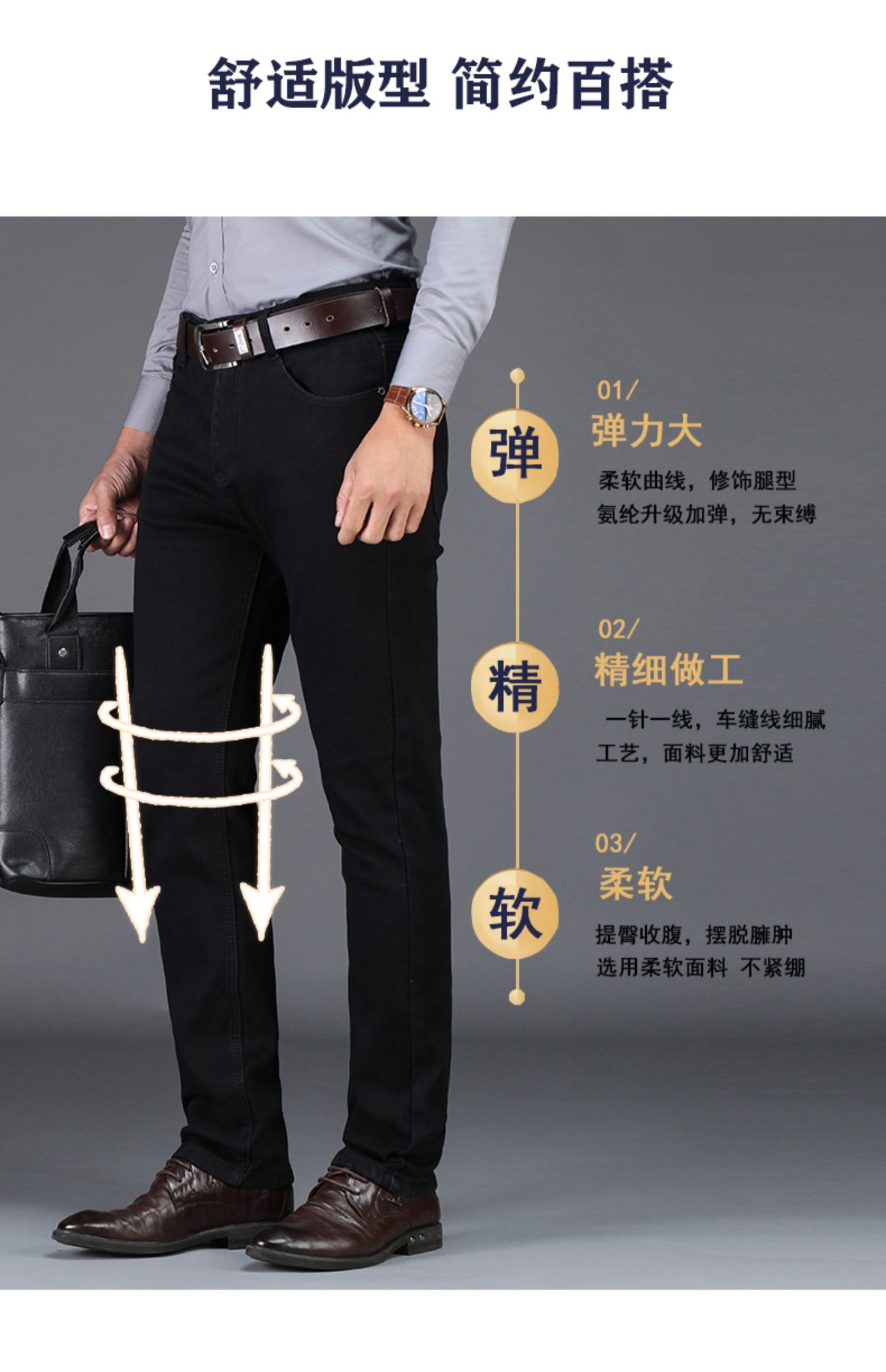 圣得西男士牛仔裤秋季款商务休闲直筒加厚弹力休闲长裤2352915569