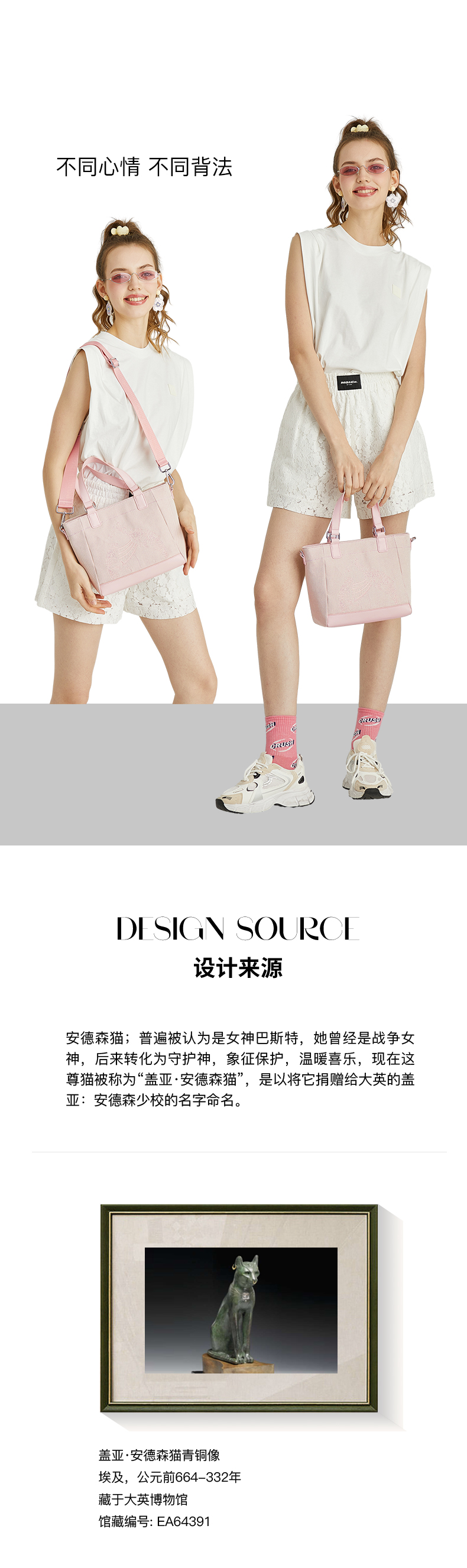 大英博物馆盖亚·安德森猫系列 粉色 刺绣帆布包两用手提斜挎包