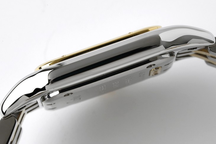 相比背透设计,密底工艺可以保障腕表机芯安全性。1表盖上,镌刻卡地亚英文标识的下方,WATER RESISTANT 更是对腕表防水性能的保障。灵活自如的链节表链是腕表另一大亮点,处处都散发着曜目而饱满的光芒,从上到下都充满着独特的优雅奢华气质。