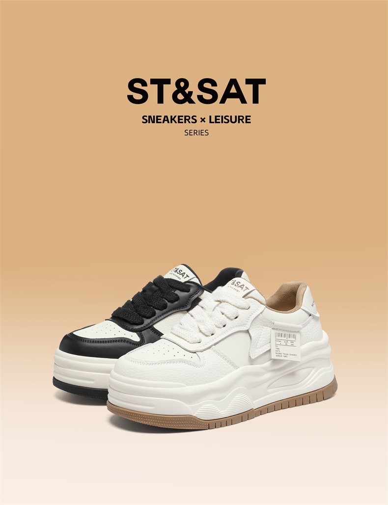 星期六黑白拼色板鞋厚底百搭小白鞋SS33112I88