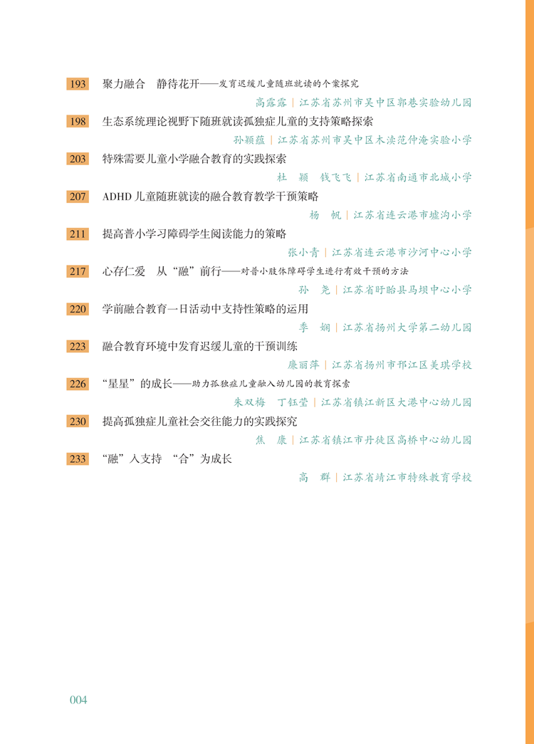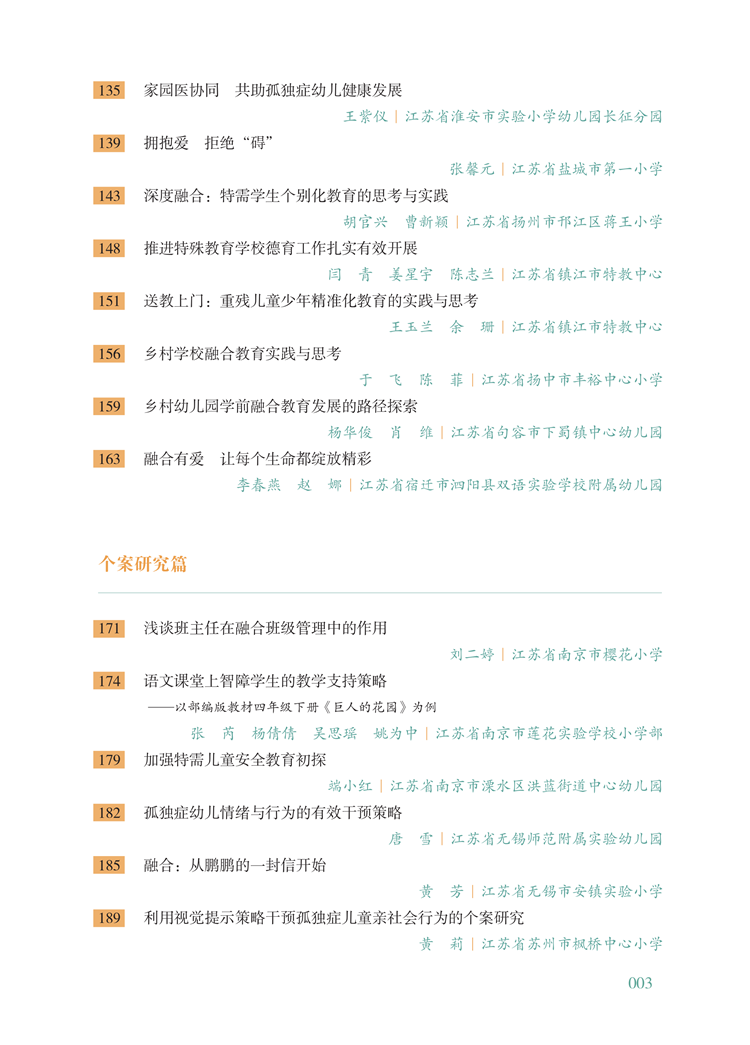 根据特殊教育发展需要,精心遴选出的50个案例,既有江苏省“特殊教育优质融合发展典型案例”与“特殊教育(融合教育)立德树人成功育人案例”,又有全国融合教育优秀教育教学案例遴选活动中的优秀案例,彰显了享有公平而有质量教育的具体举措和成果。