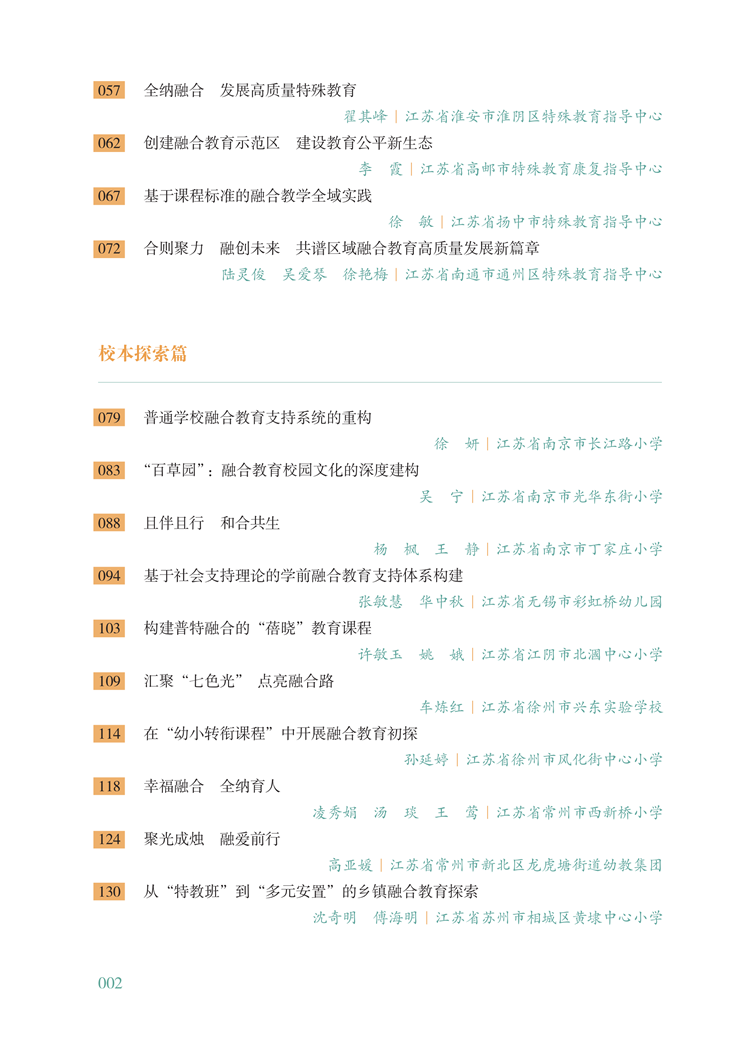 全书分三个板块——区域实践篇、校本探索篇、个案研究篇,从不同视角,图文并茂,生动地展现了融合教育工作者坚守育人初心,为党育人、为国育才的教育情怀和使命担当,以及为推动新时代特需学生融合教育的高质量发展,所深入开展的一系列理论探索与创新实践。