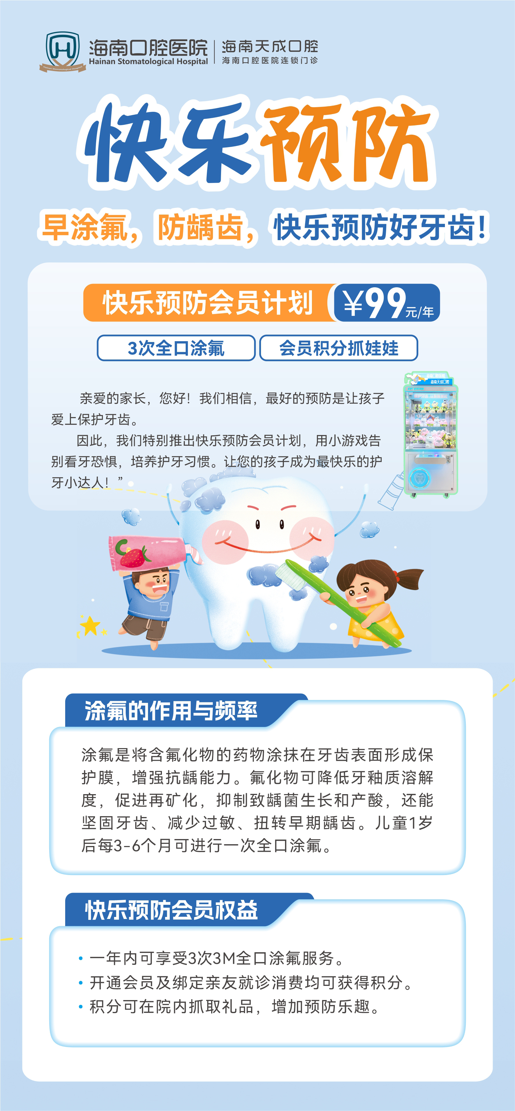 海南口腔医院 快乐预防会员卡(三次牙齿涂氟年卡)