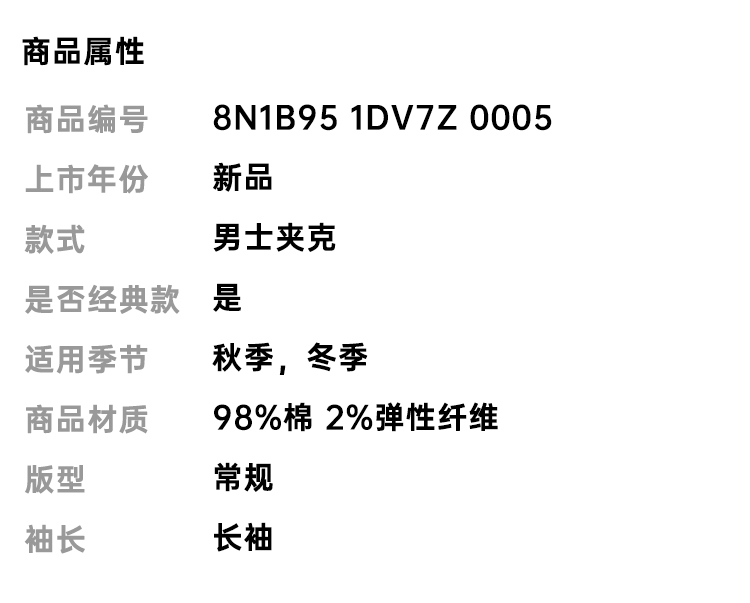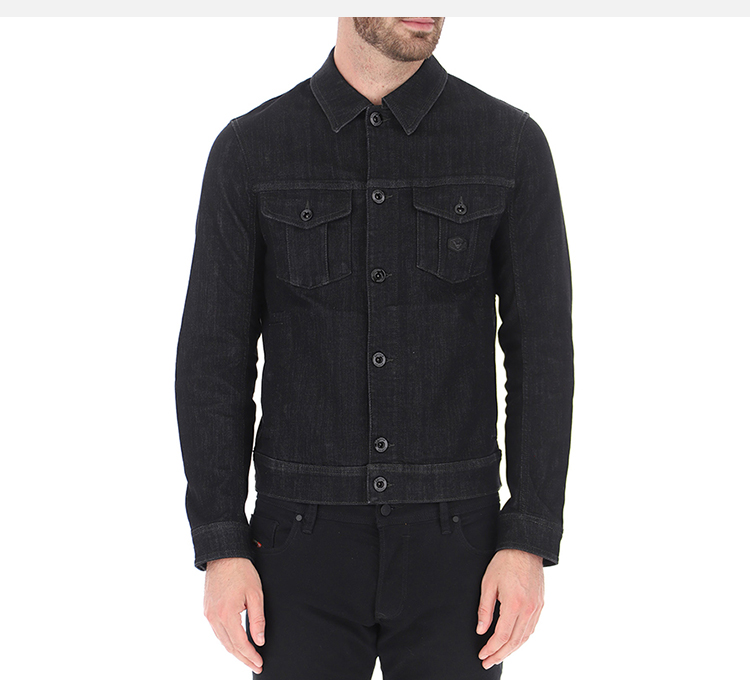 EMPORIO ARMANI EA7 阿玛尼 男士棉质徽标长袖牛仔外套 黑色 8N1B95 1DV7Z 0005