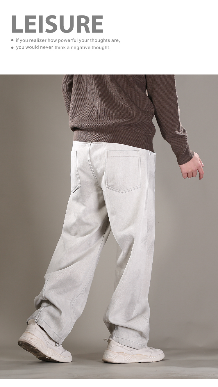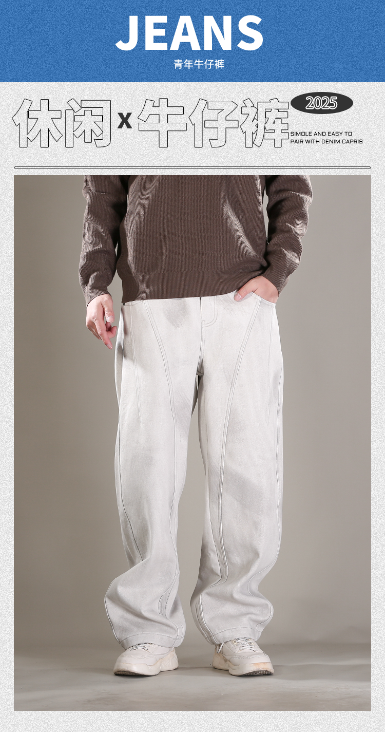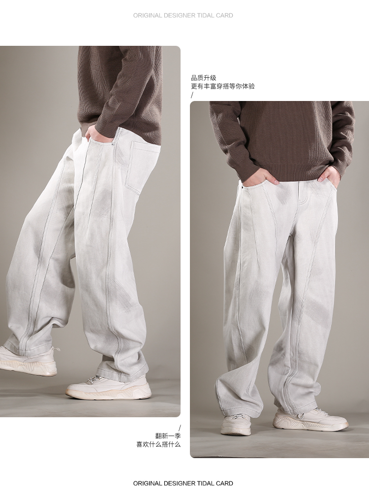 DRONKOO 2025 抽绳松紧腰破缝刷漆做旧复合薄绒厚牛仔长裤