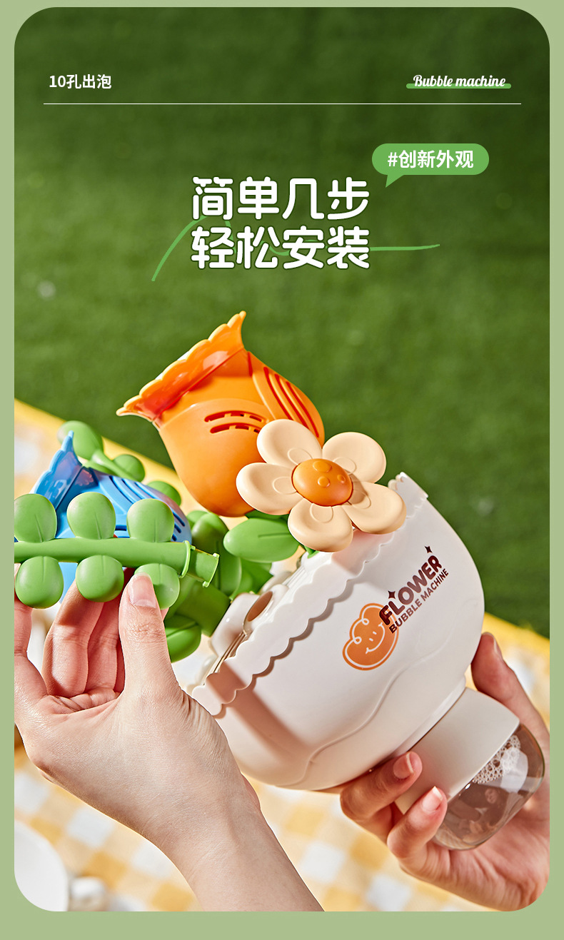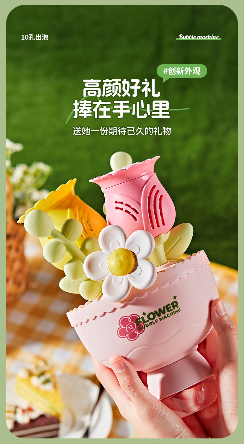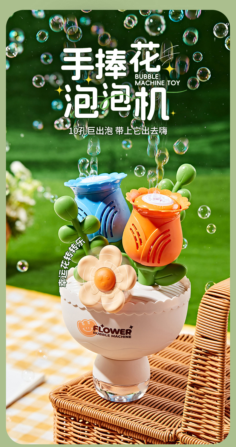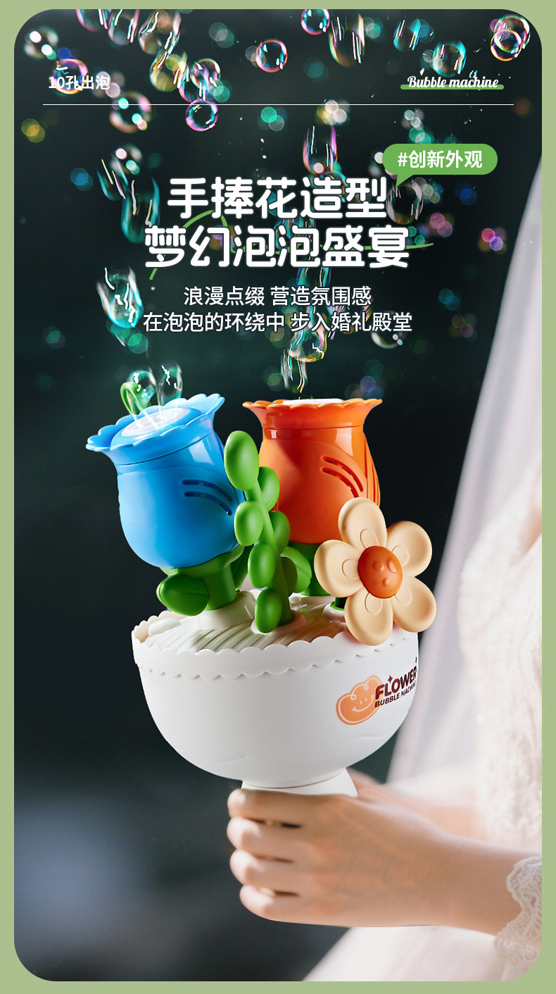 【赠泡泡水】手捧花束泡泡机 电动全自动出泡带灯光 儿童玩具送男女孩子礼物