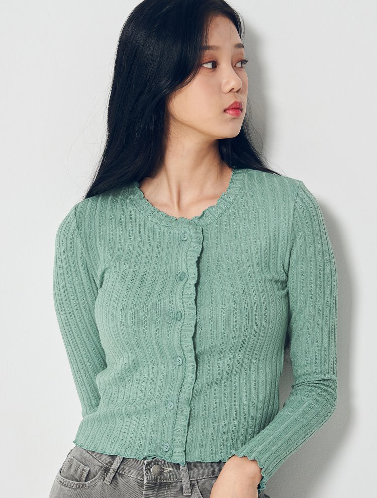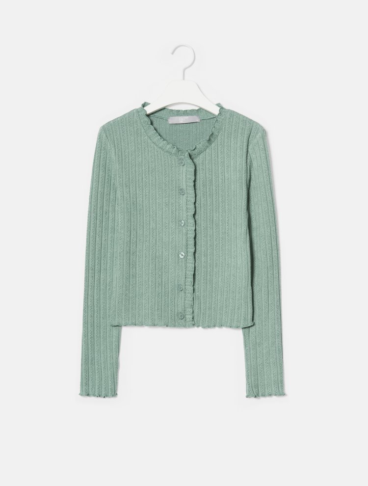 8seconds Wrinkled cardigan浅绿色皱纹电缆开衫女款JPY带授权招加盟代理