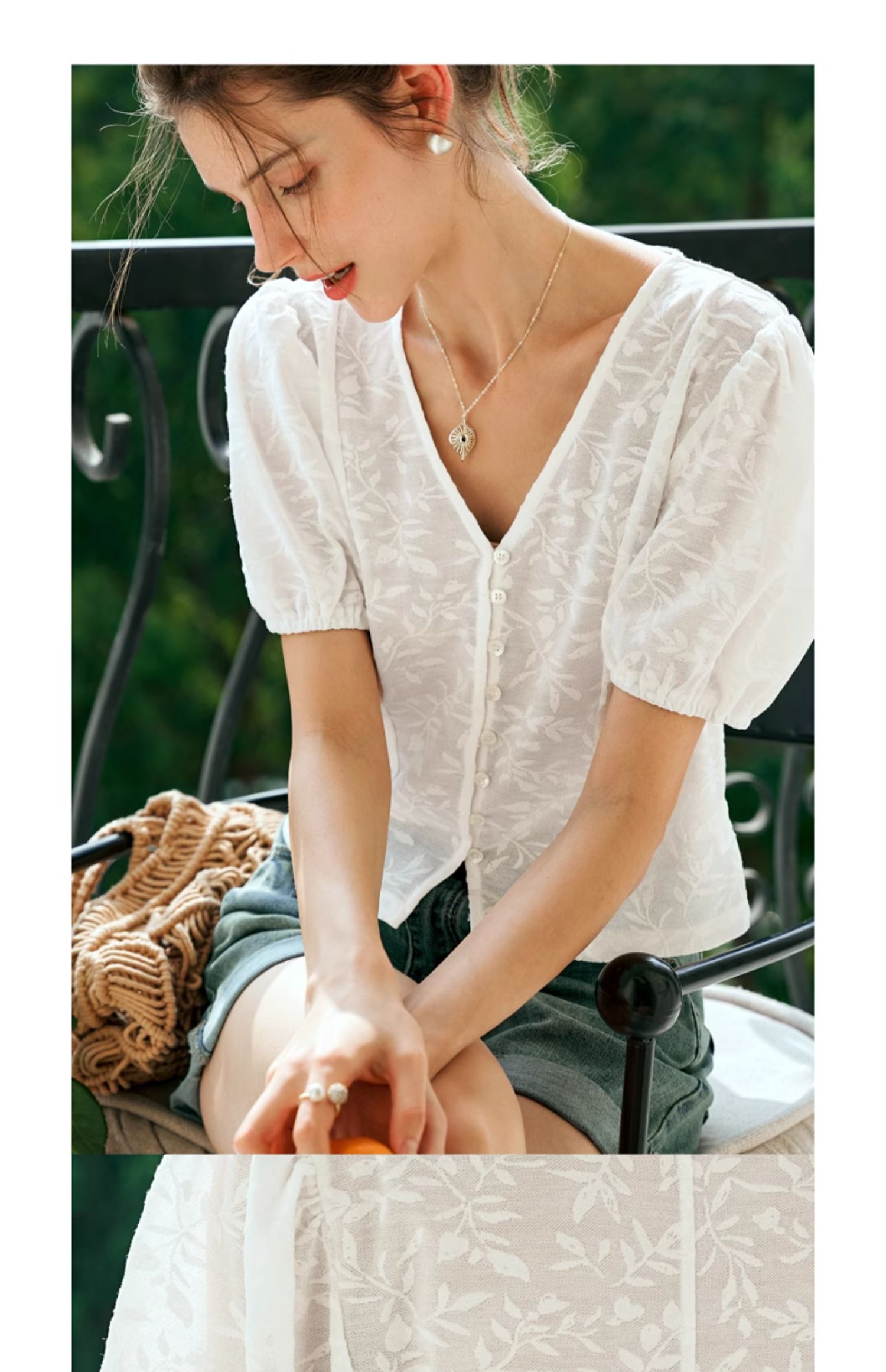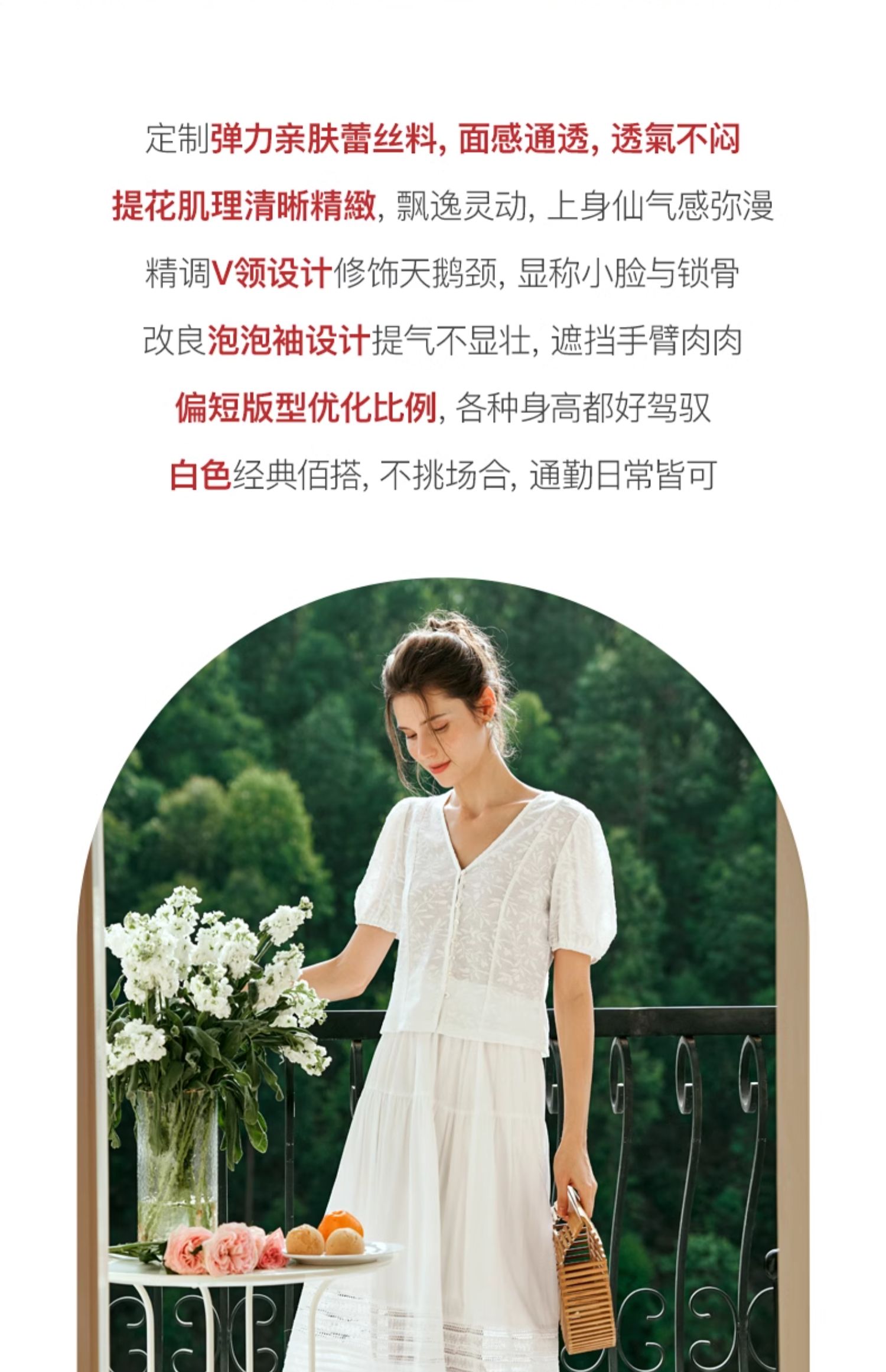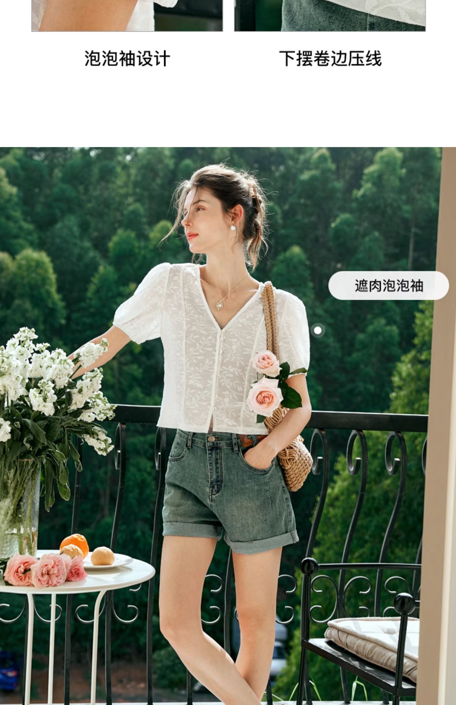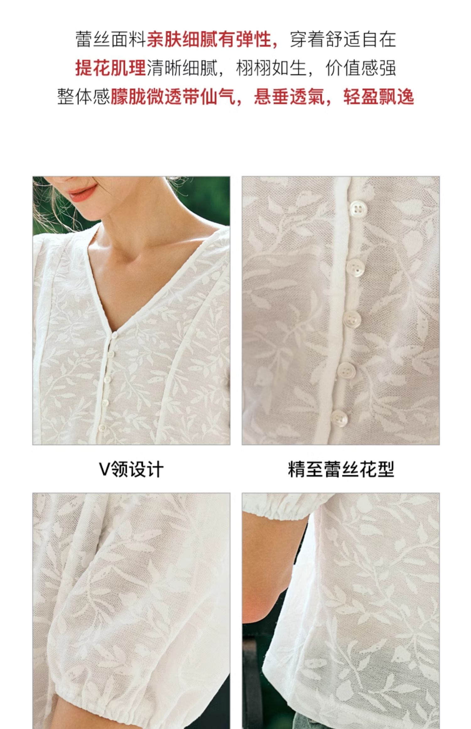 OLrain欧芮儿白色蕾丝衫女夏季2024年新款法式气质泡泡袖V领上衣