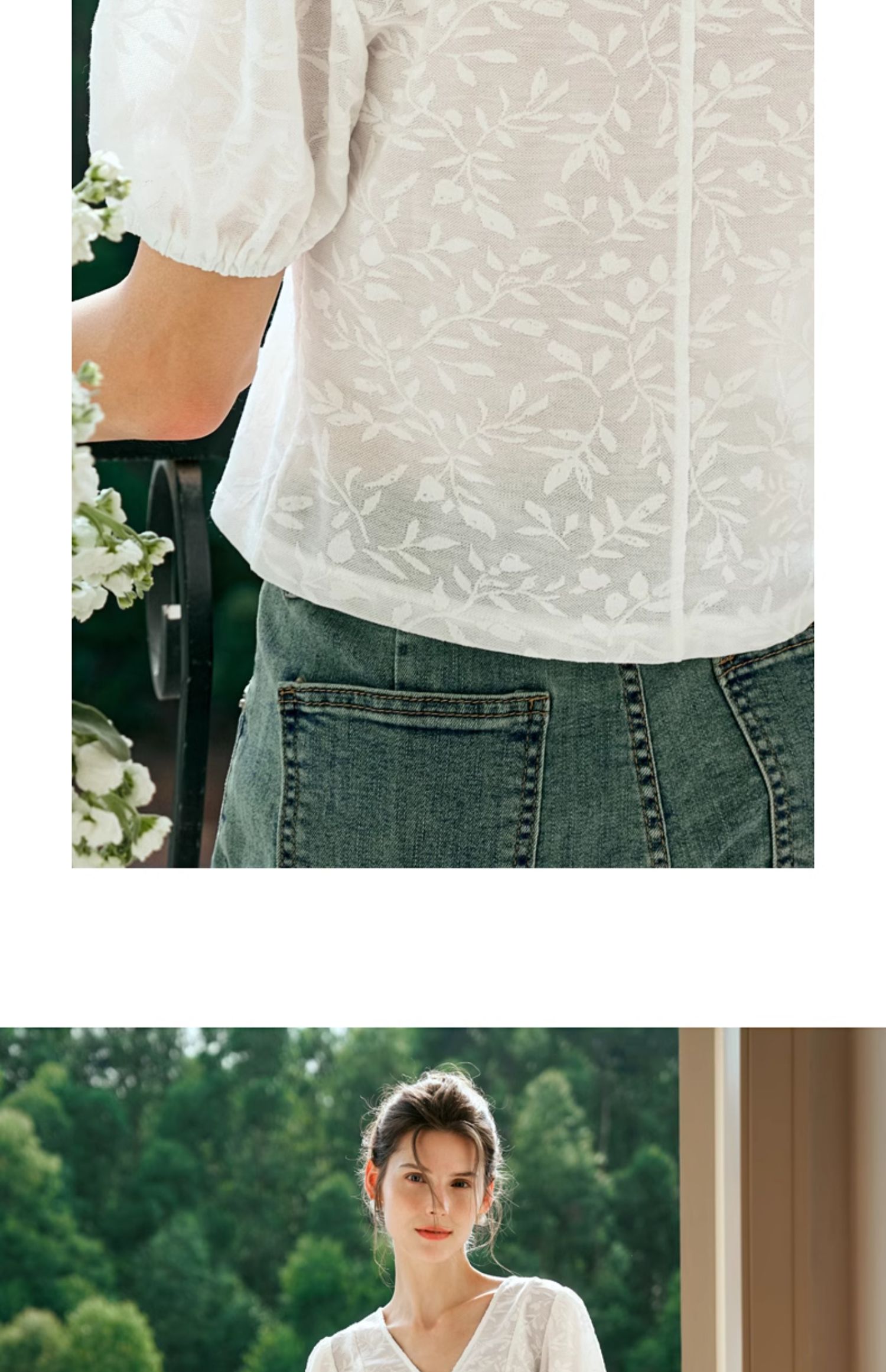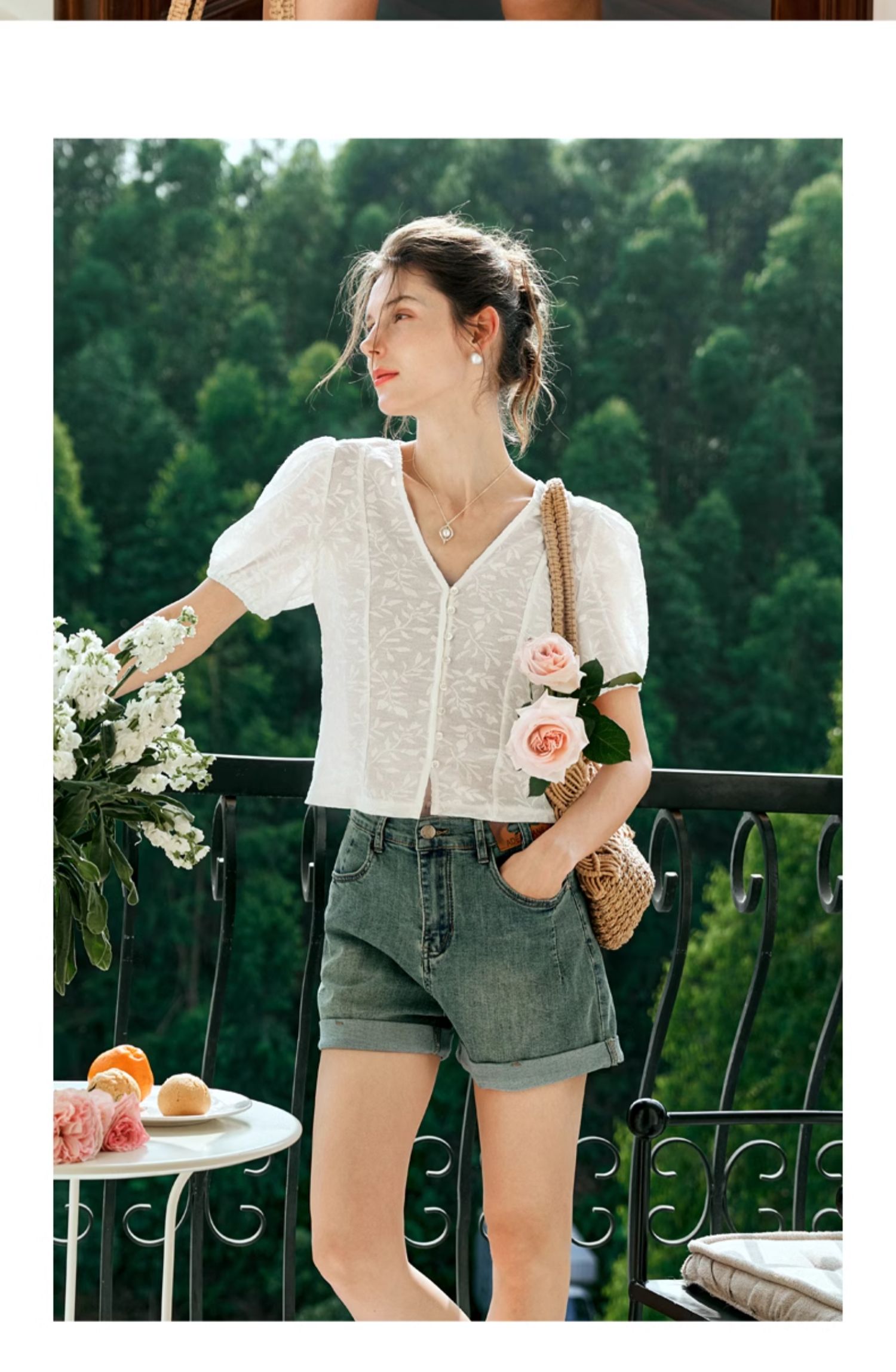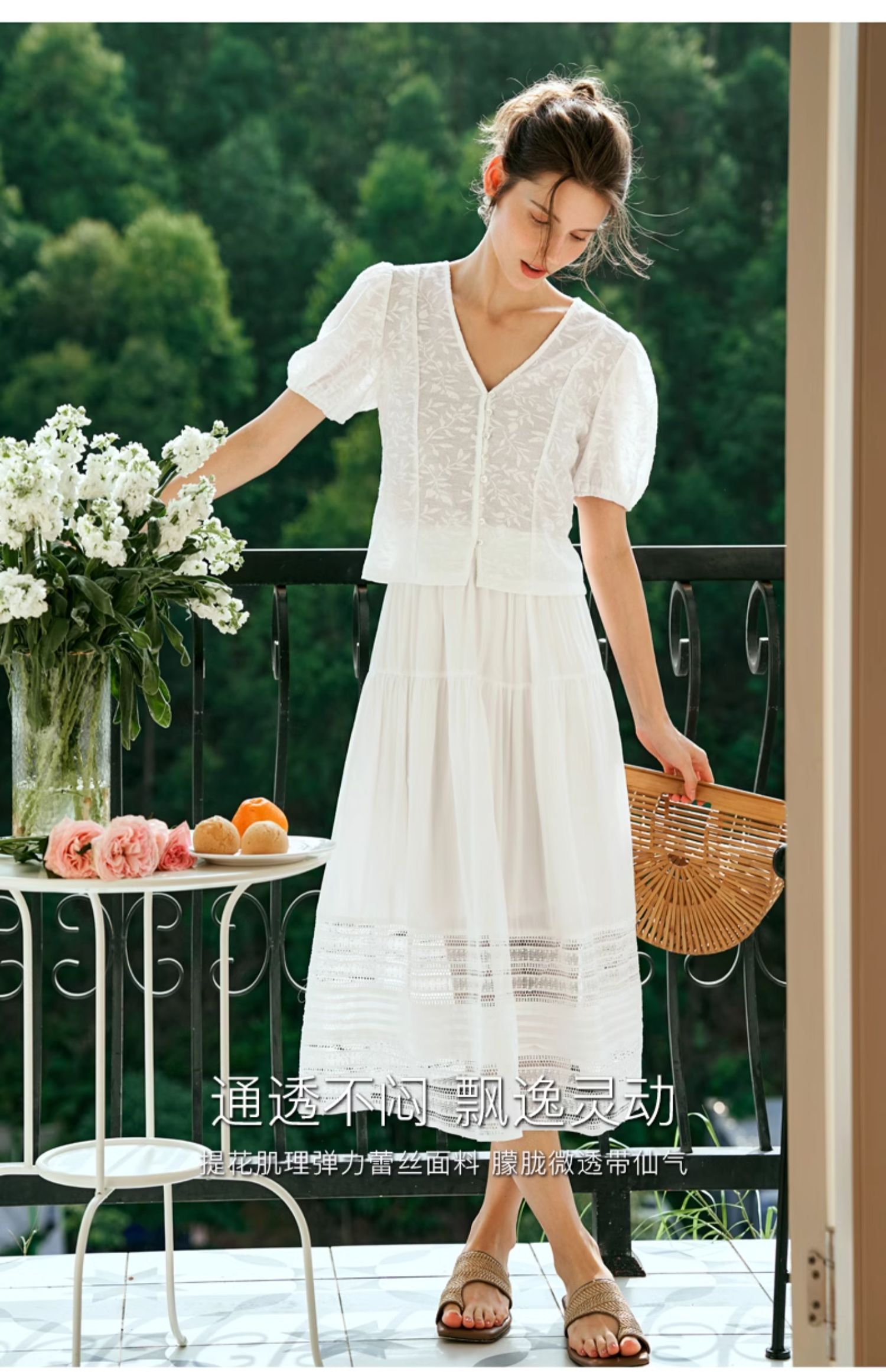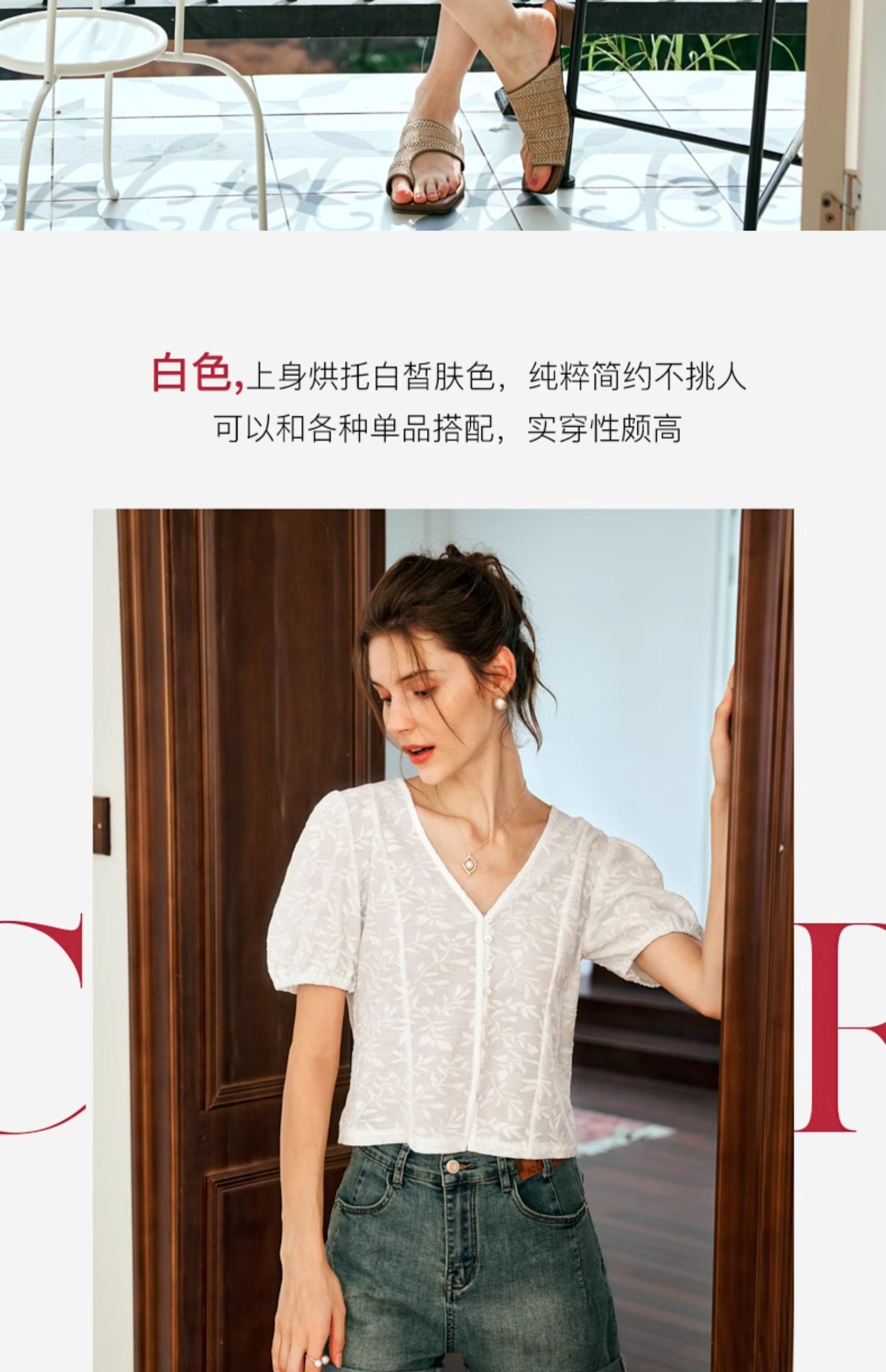 OLrain欧芮儿白色蕾丝衫女夏季2024年新款法式气质泡泡袖V领上衣