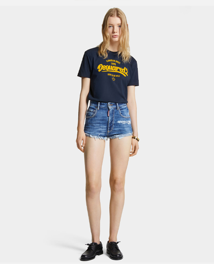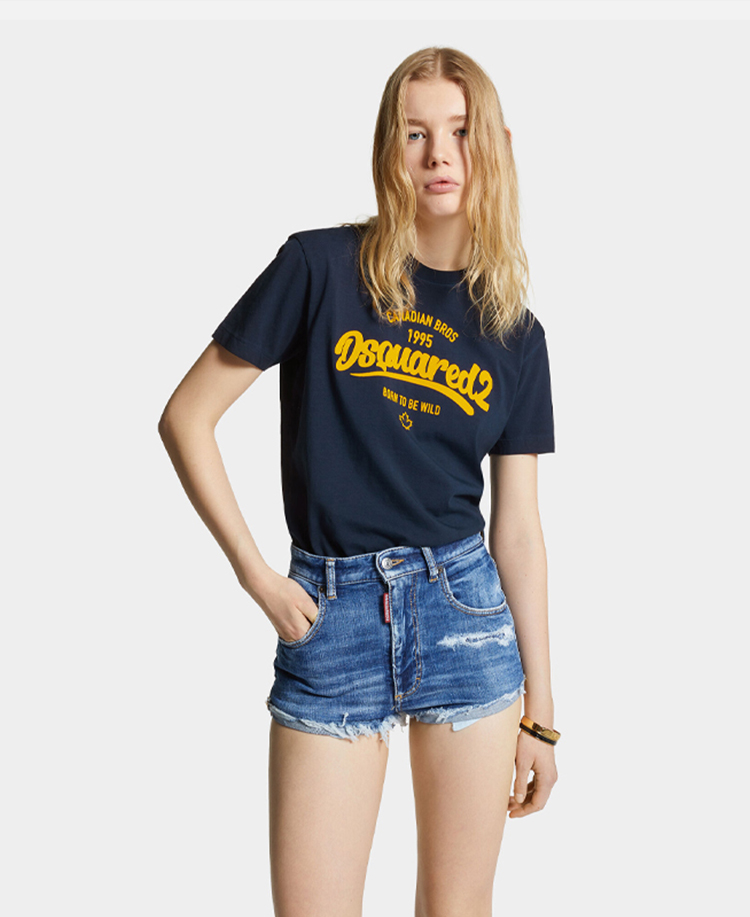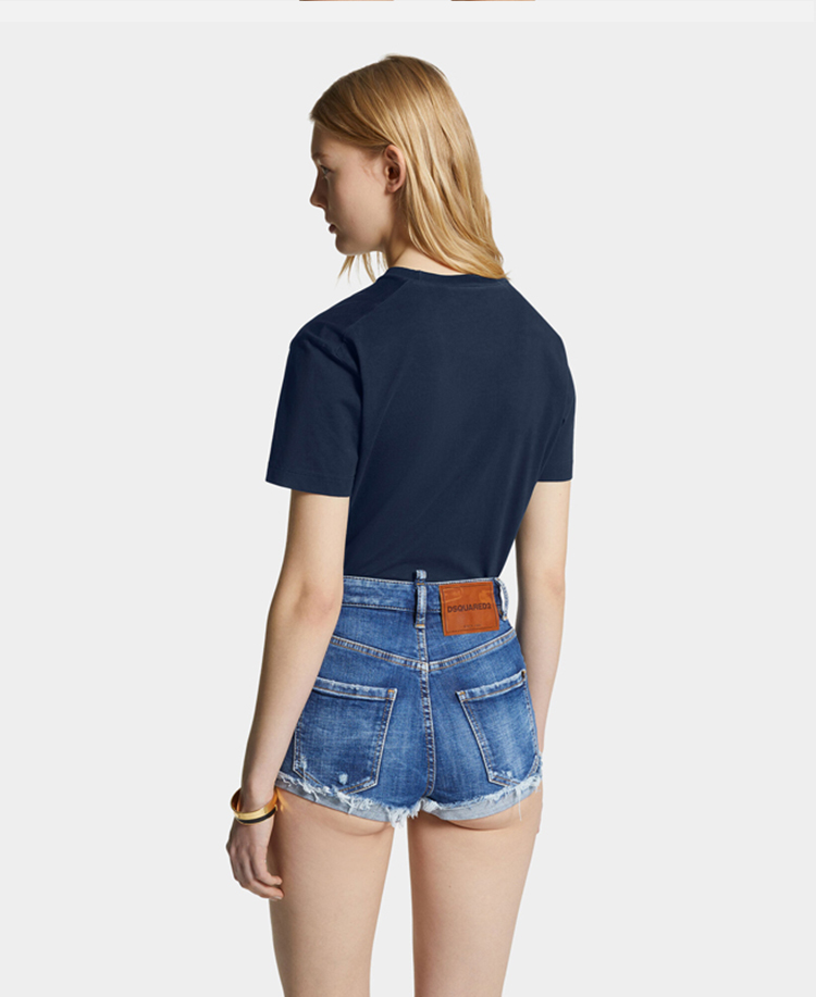 DSQUARED2 女士字母徽标印花棉质圆领短袖T恤 深蓝色 S75GD0488 D20035 524