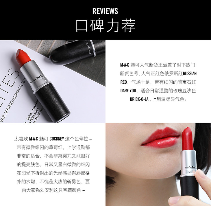 MAC魅可柔感哑光唇膏 #02.603 DIVA # 17.607LADY DANGER #01.602 CHILI #510 LADY BUG