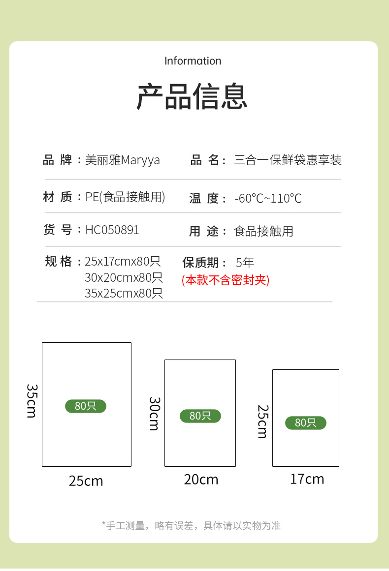 【批发】美丽雅三合一保鲜袋惠享装17*25/20*30/25*35