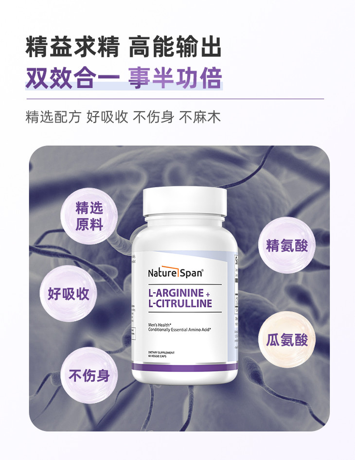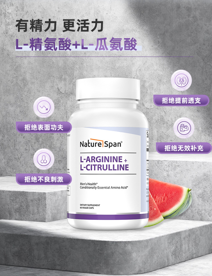左旋精氨酸+瓜氨酸胶囊男士精力支持60粒 NATURESPAN倍能适