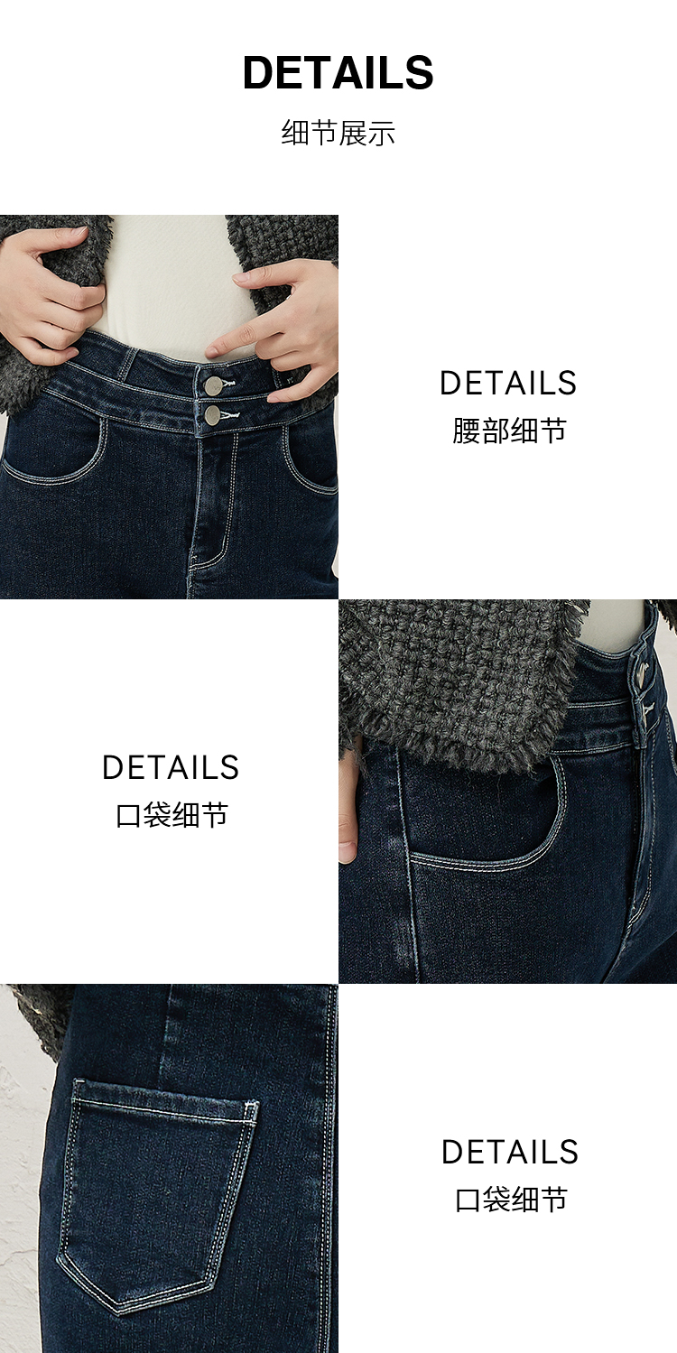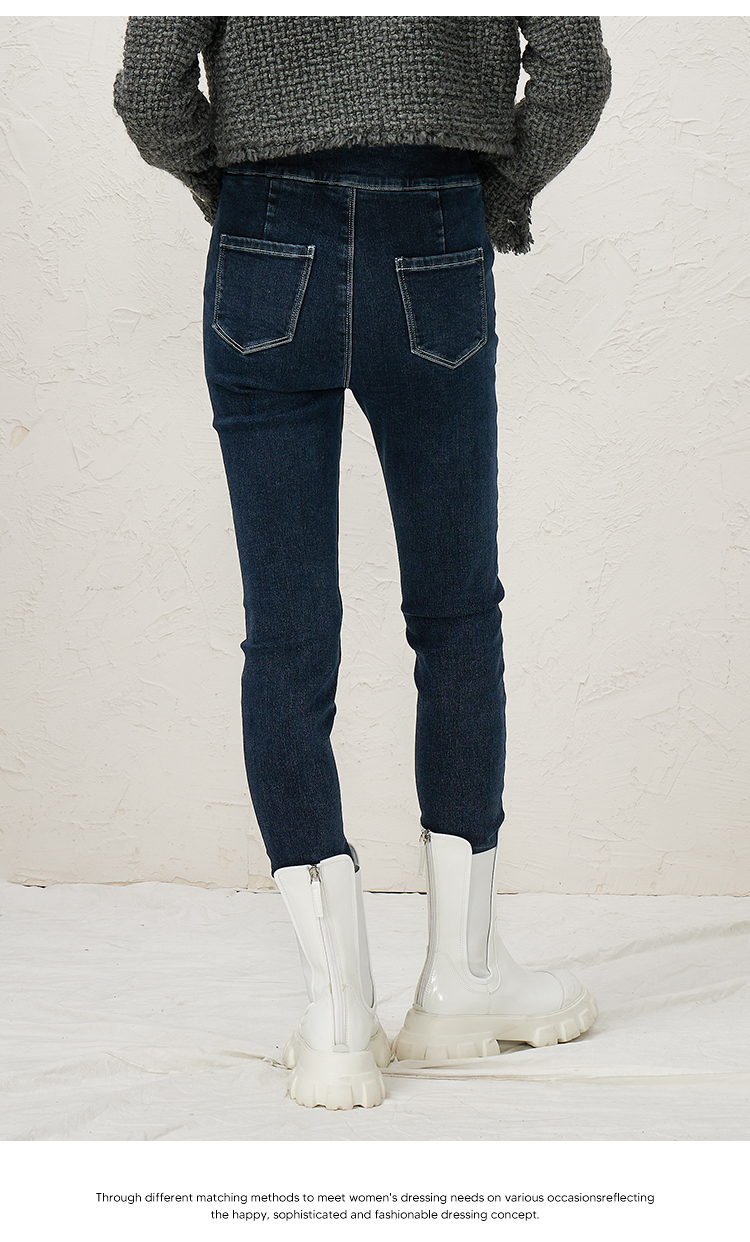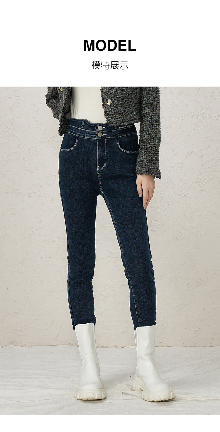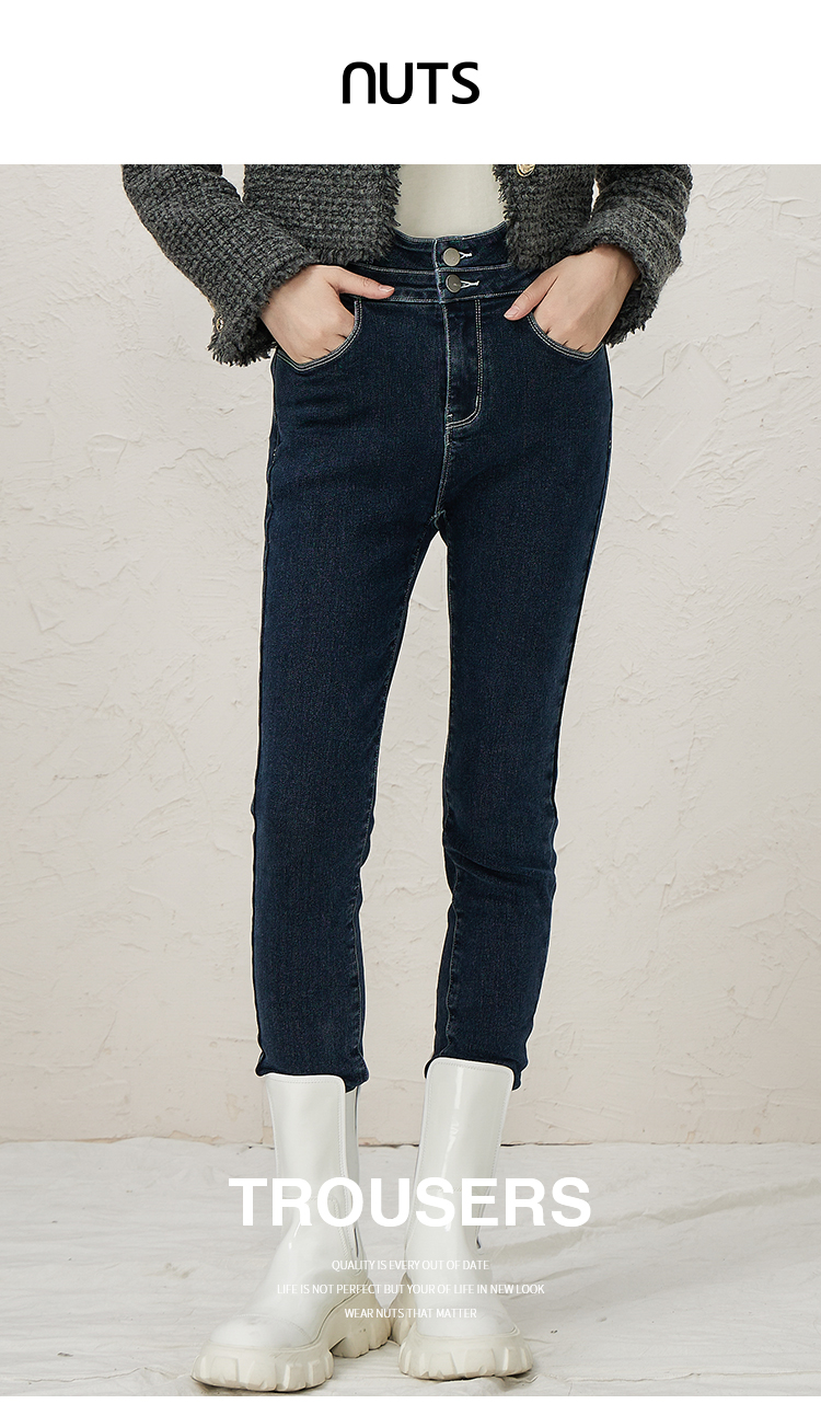 NUTS秋冬款深蓝色气质百搭修身高腰显瘦长款牛仔裤女343112209
