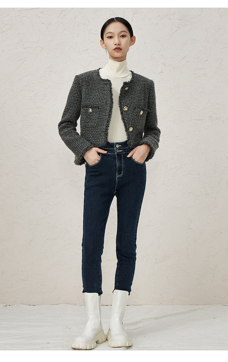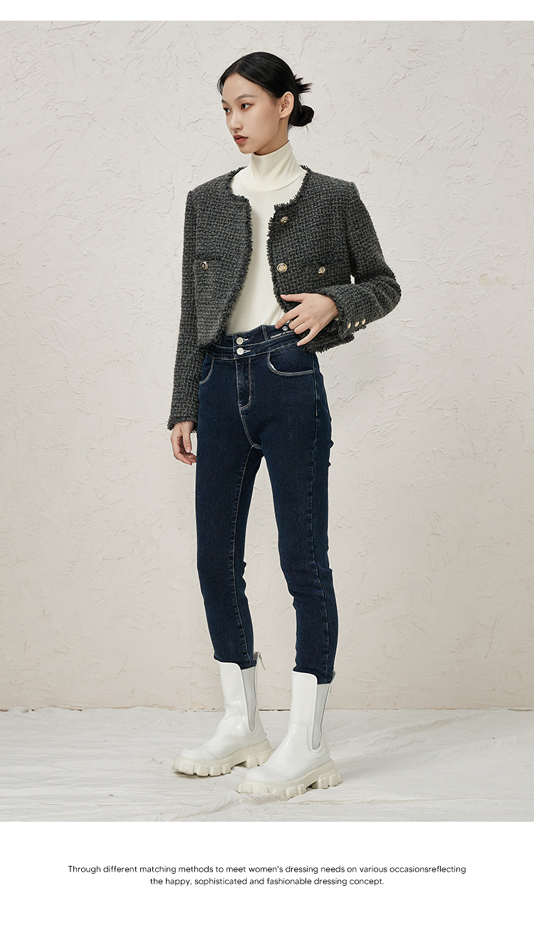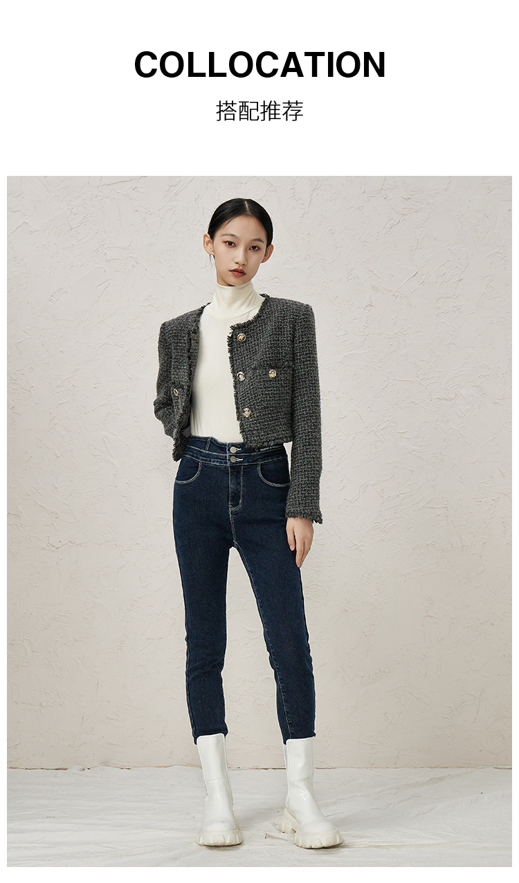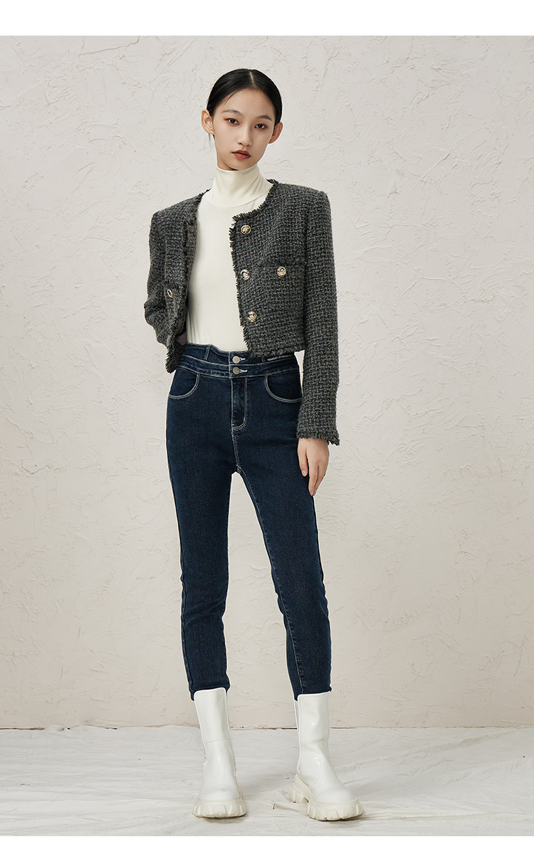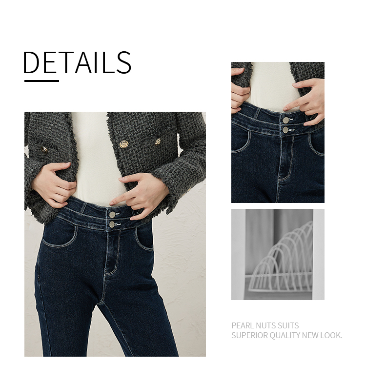 NUTS秋冬款深蓝色气质百搭修身高腰显瘦长款牛仔裤女343112209