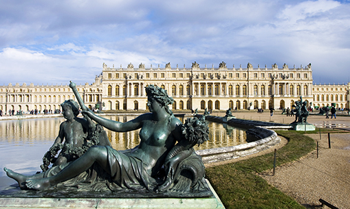 凡尔赛,法国巴黎的卫星城。伊夫林省省会,曾是法兰西王朝的行政中心。位于巴黎西南15千米处。为艺术城市,凡尔赛宫属法兰西艺术的明珠。宫殿、花园壮观精美,内部陈设和装潢富艺术性,底层为艺术博物馆。如果凡尔赛宫的外观给人以宏伟壮观的感觉,那么它的内部陈设及装潢就更富于艺术魅力,室内装饰极其豪华富丽是凡尔赛宫的一大特色。 500 余间大殿小厅处处金碧辉煌,豪华非凡:内壁装饰以雕刻、巨幅油画及挂毯为主,配有17、18世纪造型超绝、工艺精湛的家具。大理石院和镜厅是其中最为突出的两处,除了上面讲到的室内装饰外,太阳也是常用的题目,因为太阳是路易十四的象征。有时候还和兵器、盔甲一起出现在墙面上。除了用人像装饰室内外,还用狮子、鹰、麒麟等动物形象来装饰室内。有的还用金属铸造成楼梯栏杆,有些金属配件还镀了金,配上各种色彩有大理石,显得十分灿烂。