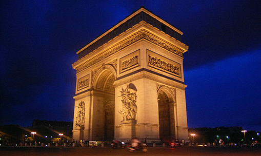 位于巴黎戴高乐广场中心的凯旋门全称雄狮凯旋门,是为纪念拿破仑1806年战争胜利而建。凯旋门正下方是无名烈士墓,巴黎的12条主要街道以凯旋门为中心向四周扩散。作为世界上首屈一指的纪念性建筑,虽以古代罗马的凯旋门为原型,但其规模是罗马时代难以比拟的。建筑以巨型雕刻作为立面的主要构成要素,立面上以“起义”、“胜利”、“抗战”和“和平”为主题的四组巨大雕刻,出自当时三位法国古典浪漫主义雕刻大师之手,具有极大的艺术震撼力。