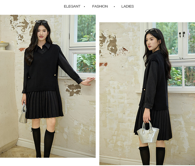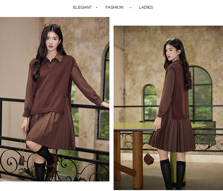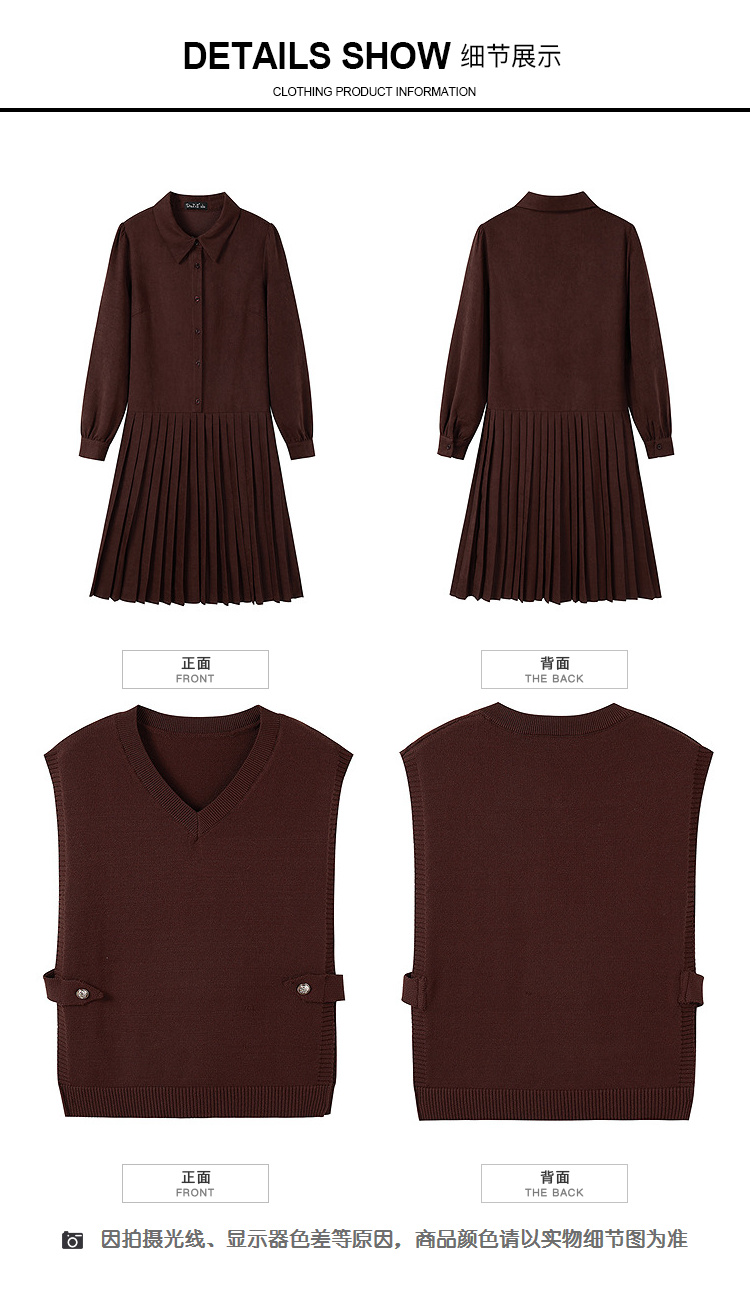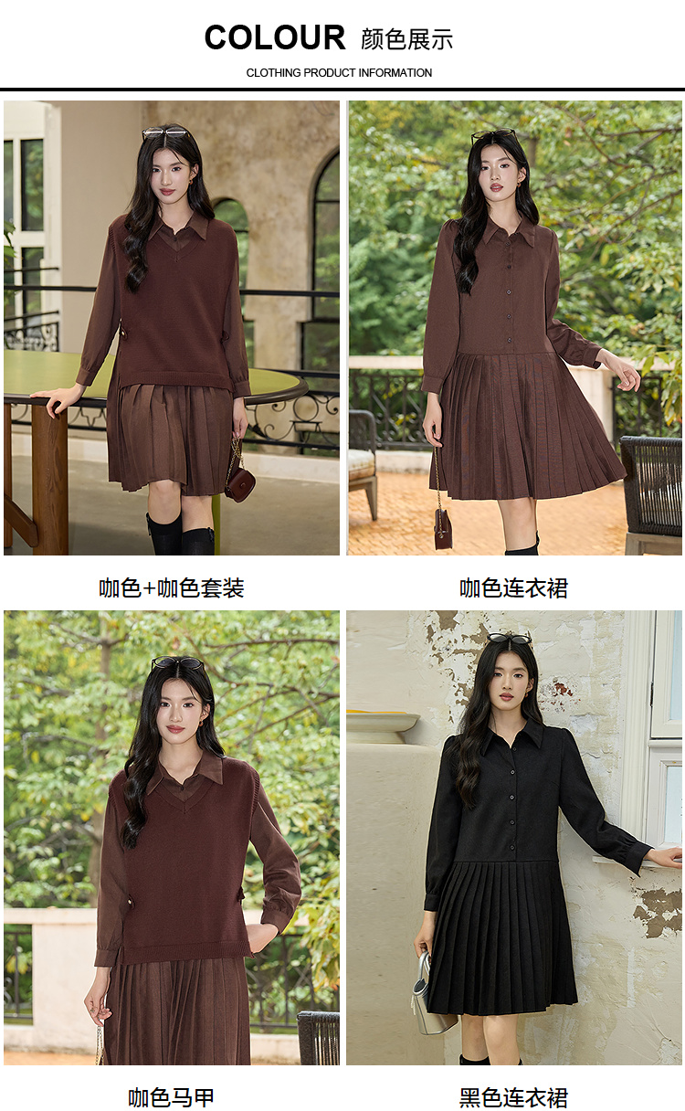 奢姿大码女装2025冬季气质翻领两件套胖妹妹百褶设计时尚复古套装9954994342AB