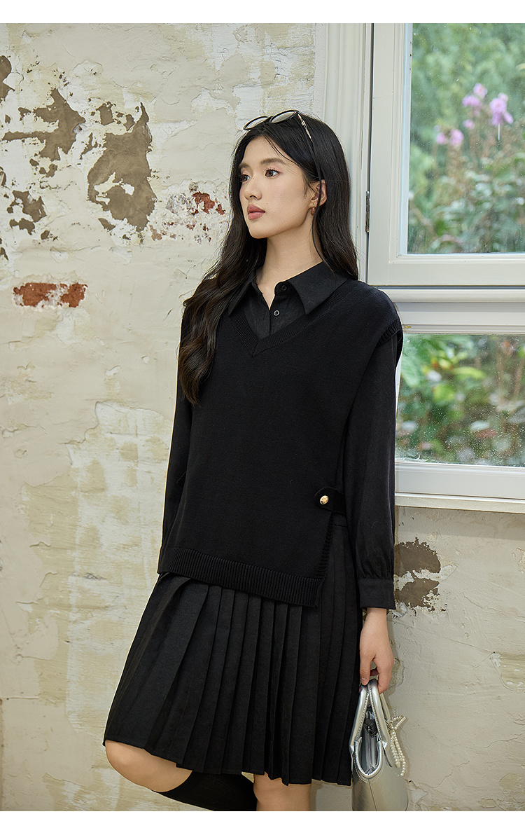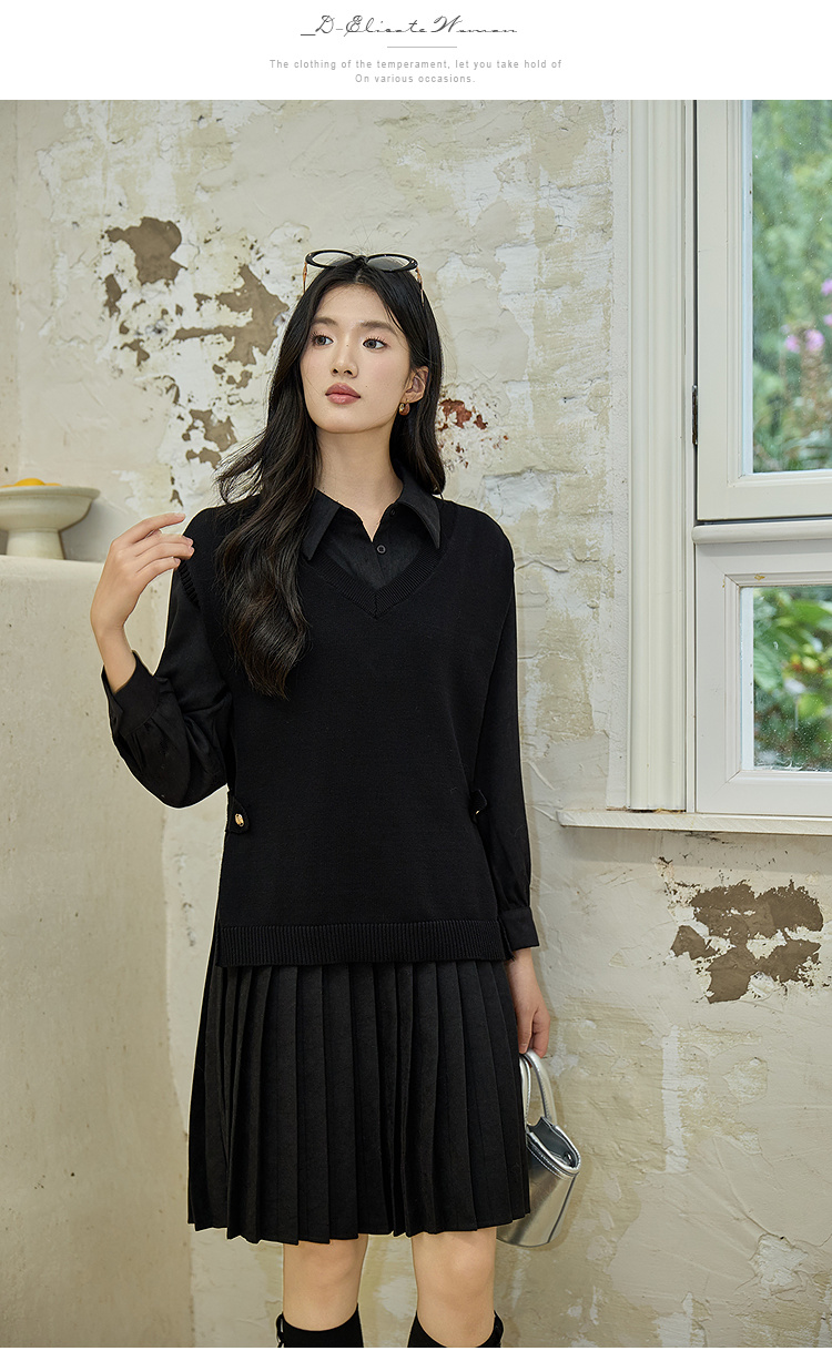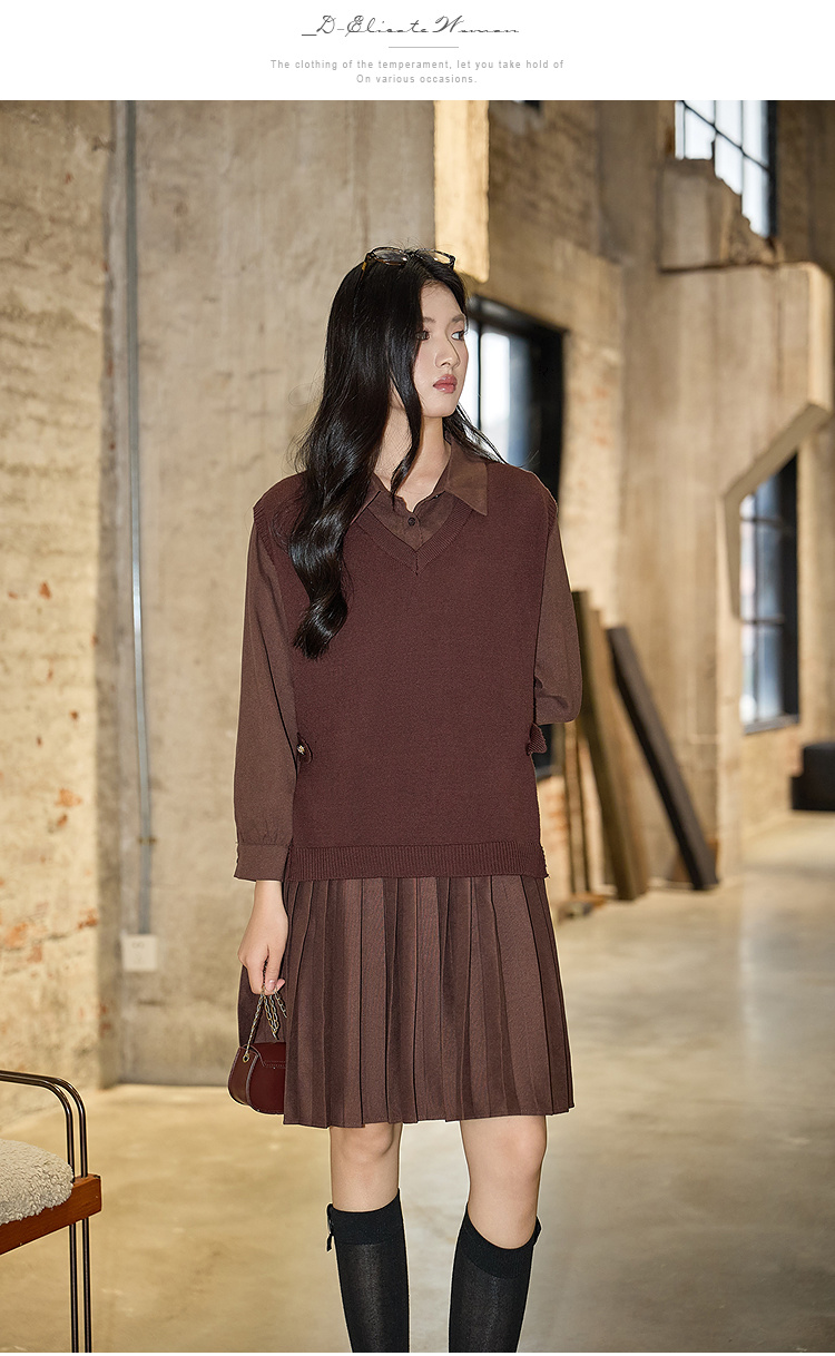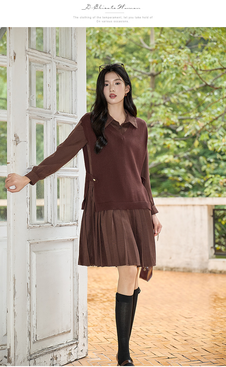 奢姿大码女装2025冬季气质翻领两件套胖妹妹百褶设计时尚复古套装9954994342AB