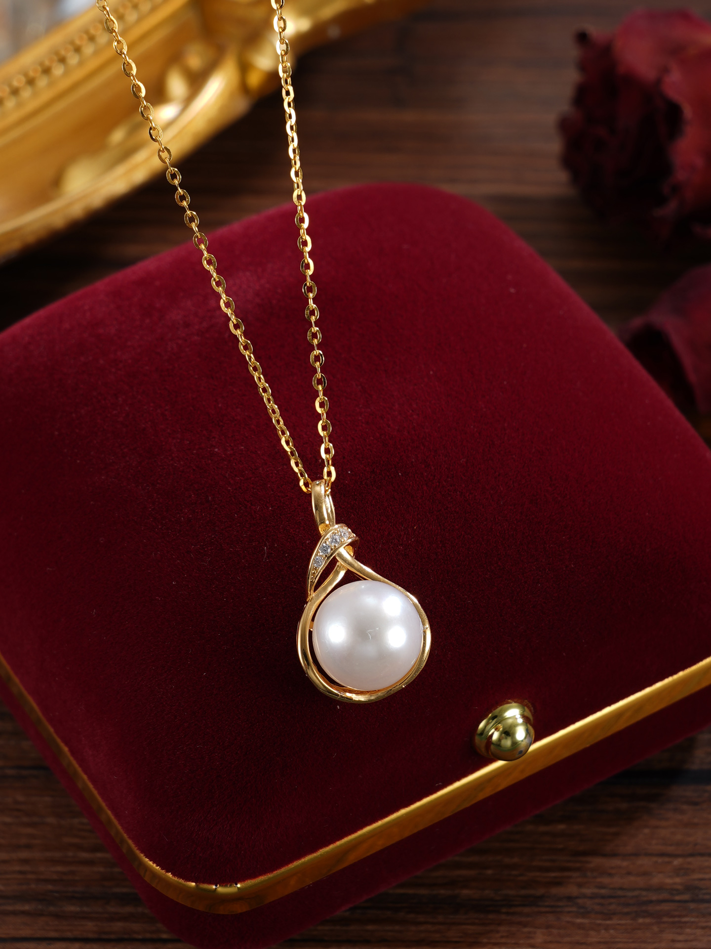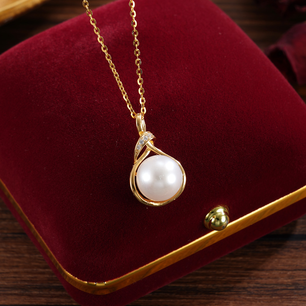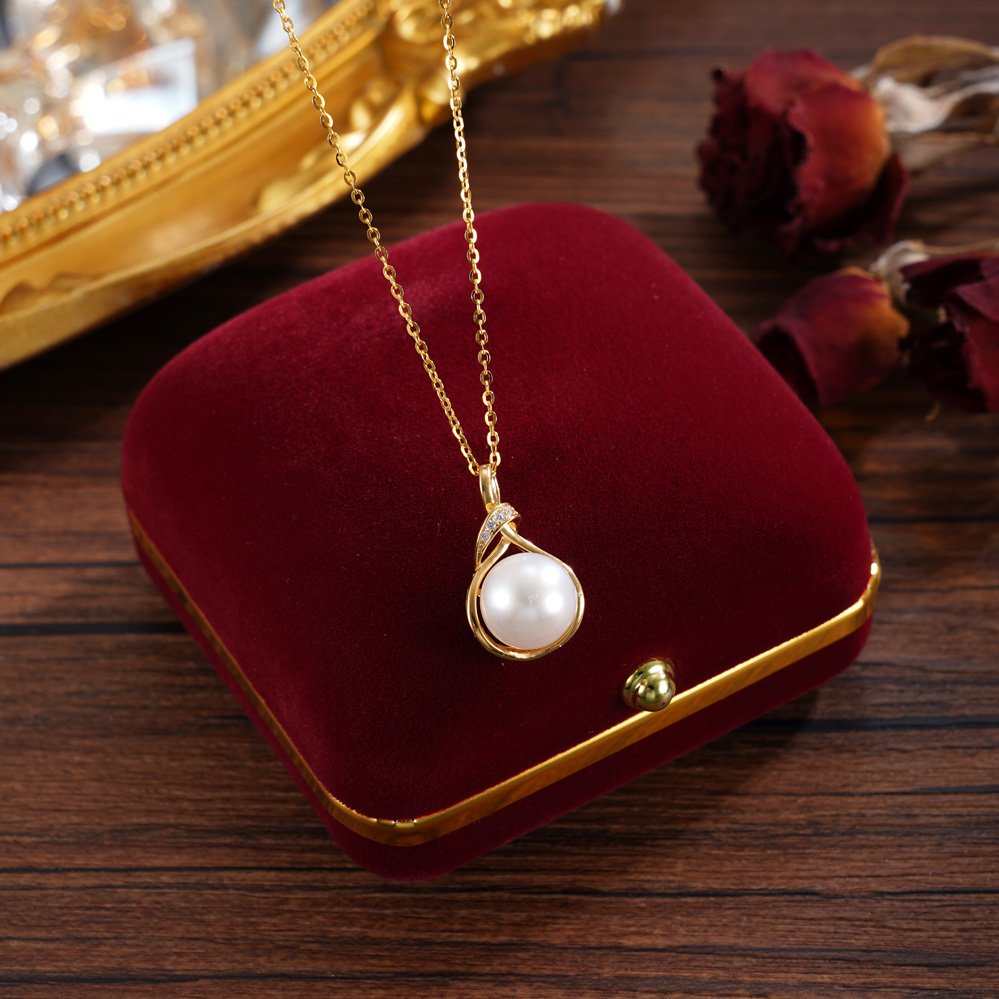 子佩集【霞织锦梦】银S925珍珠惜王妃套链【P1888】9.5mm珠镀金缠绕水滴2601