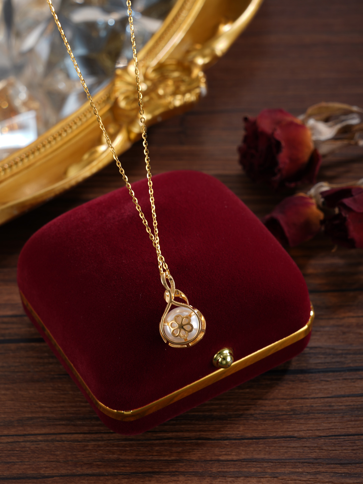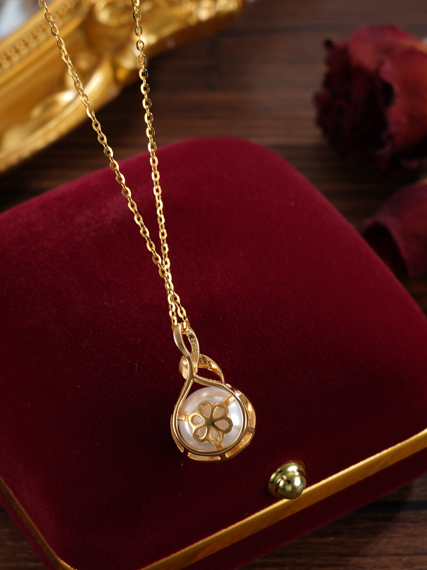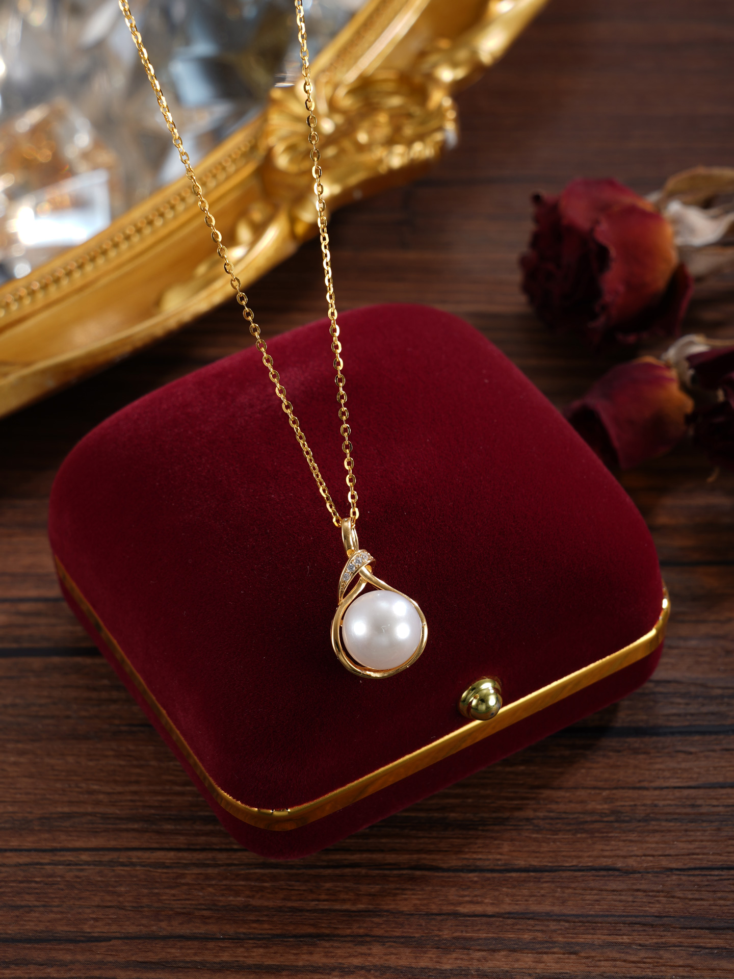 子佩集【霞织锦梦】银S925珍珠惜王妃套链【P1888】9.5mm珠镀金缠绕水滴2601