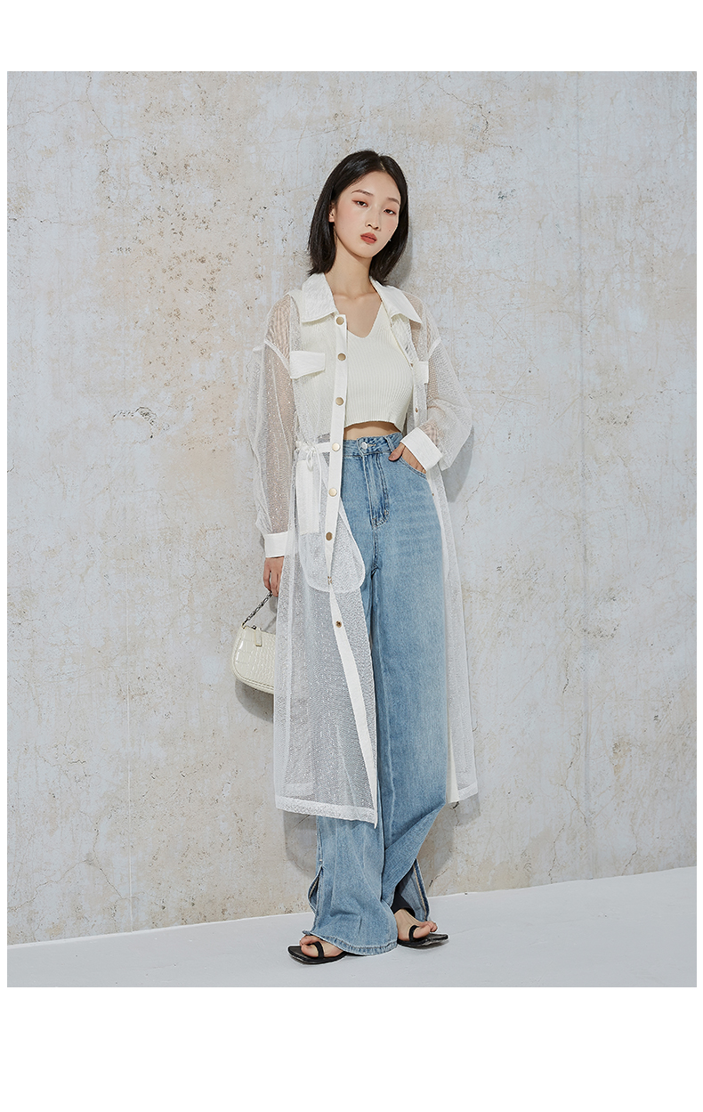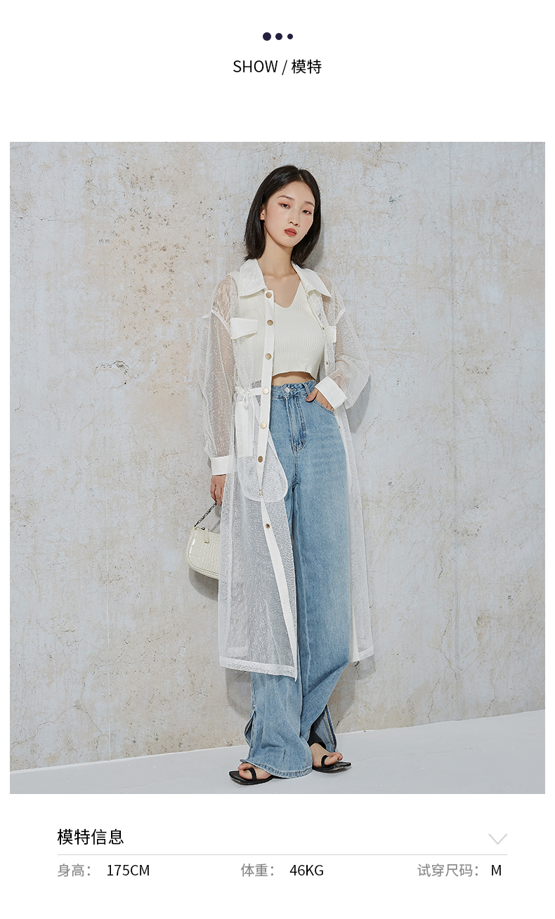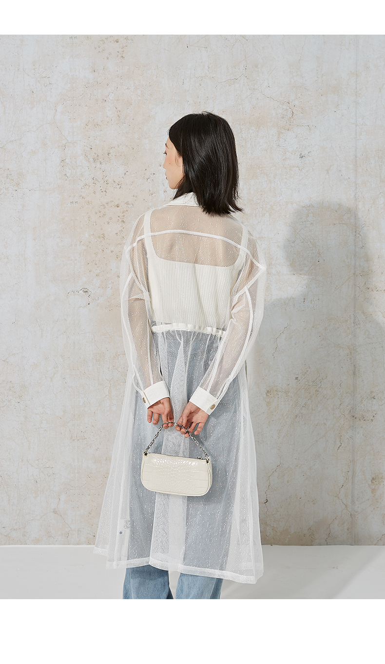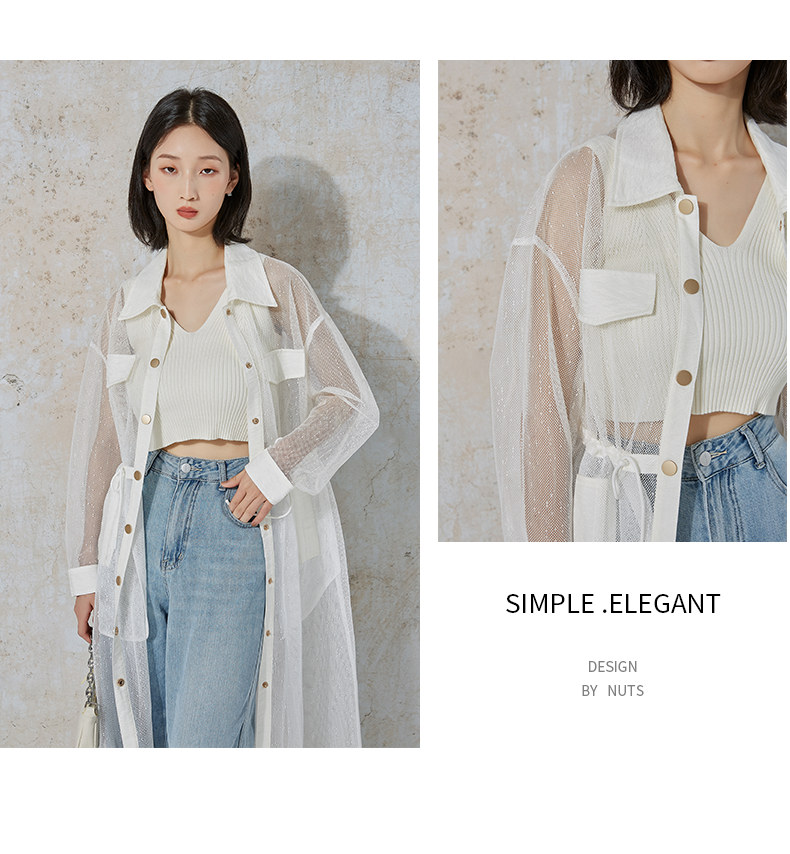 NUTS秋季新款气质时尚设计感网纱透感衬衫款长外套女231043025B