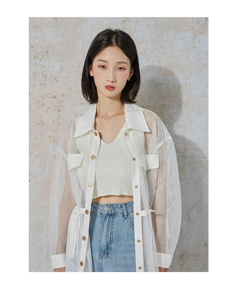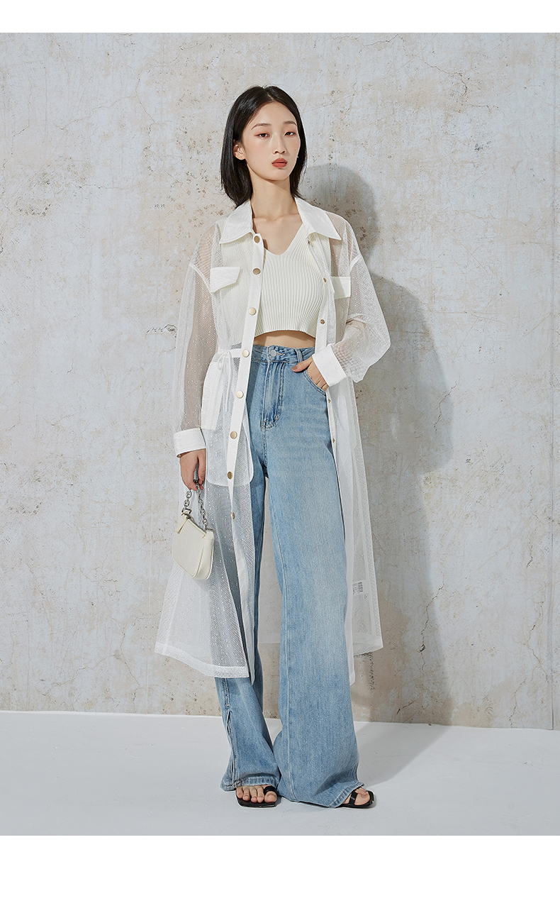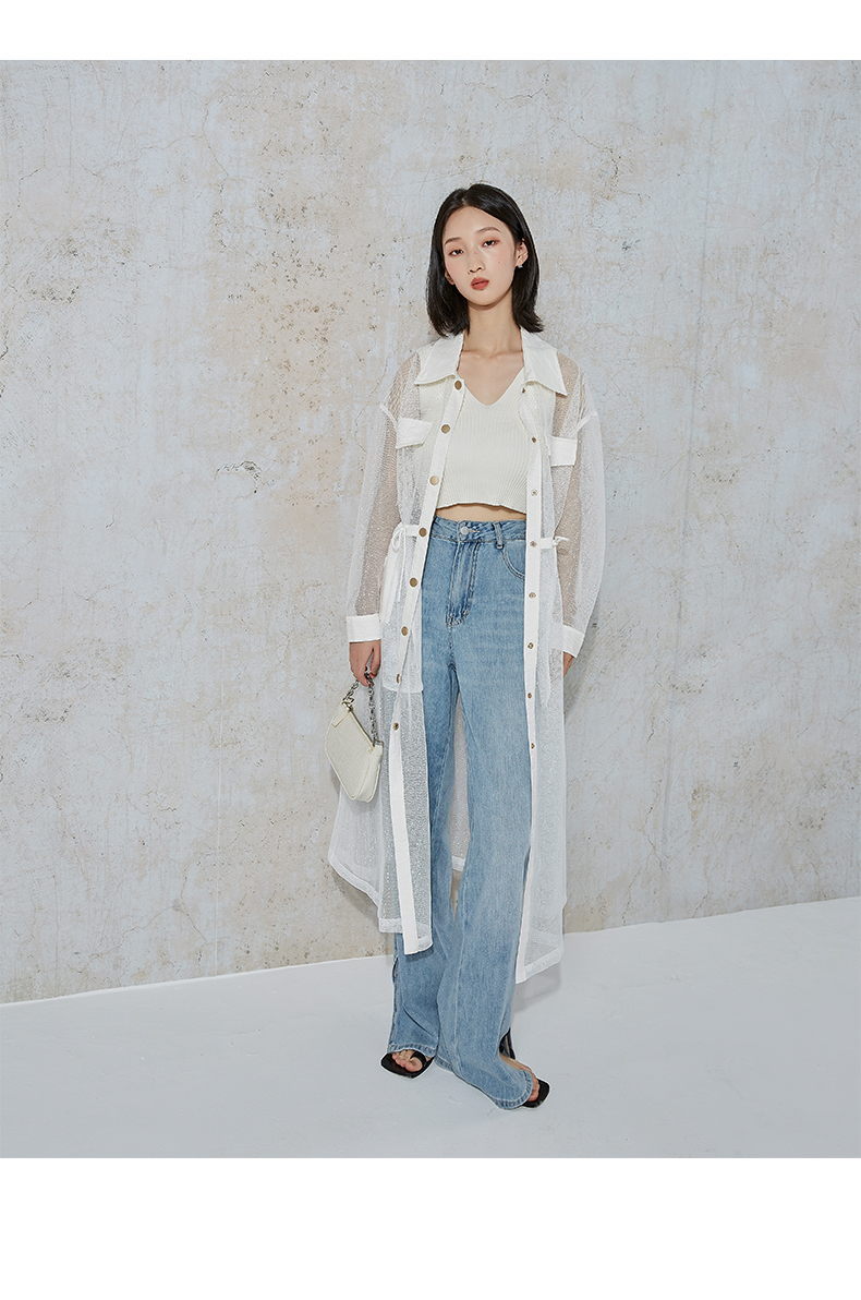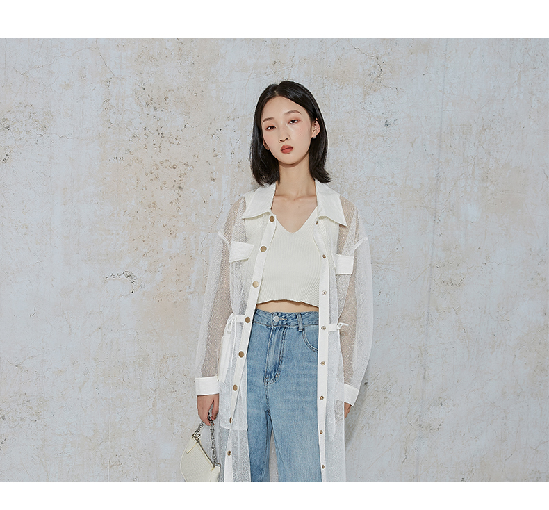 NUTS秋季新款气质时尚设计感网纱透感衬衫款长外套女231043025B