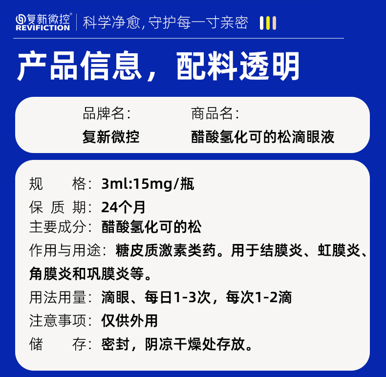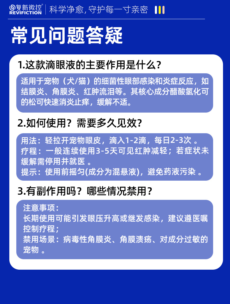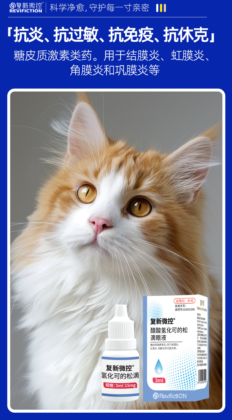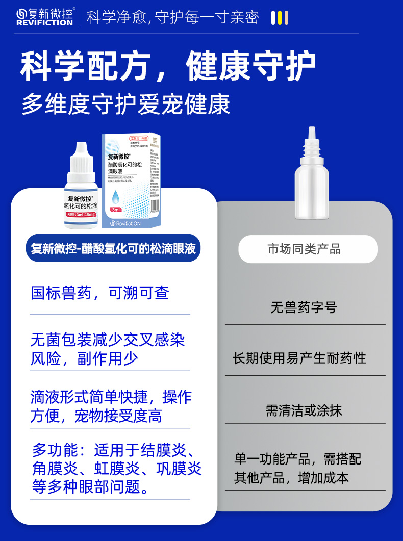 复新微控 -复明 -滴眼液犬猫通用氢化可的松抗毒止痒抗炎抗敏
