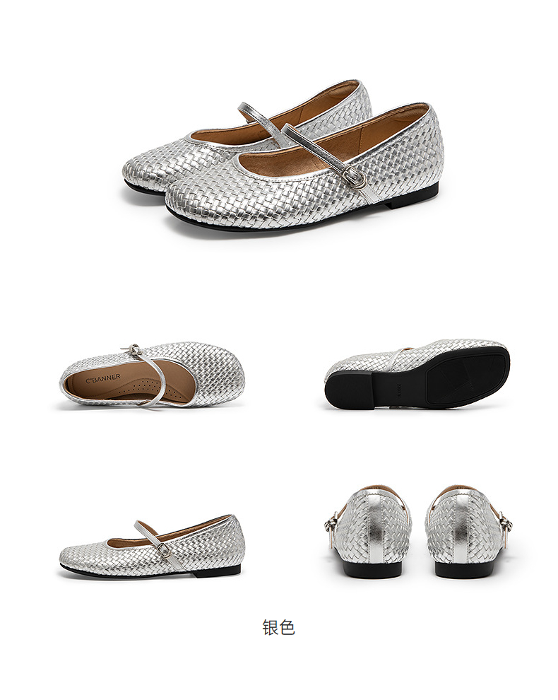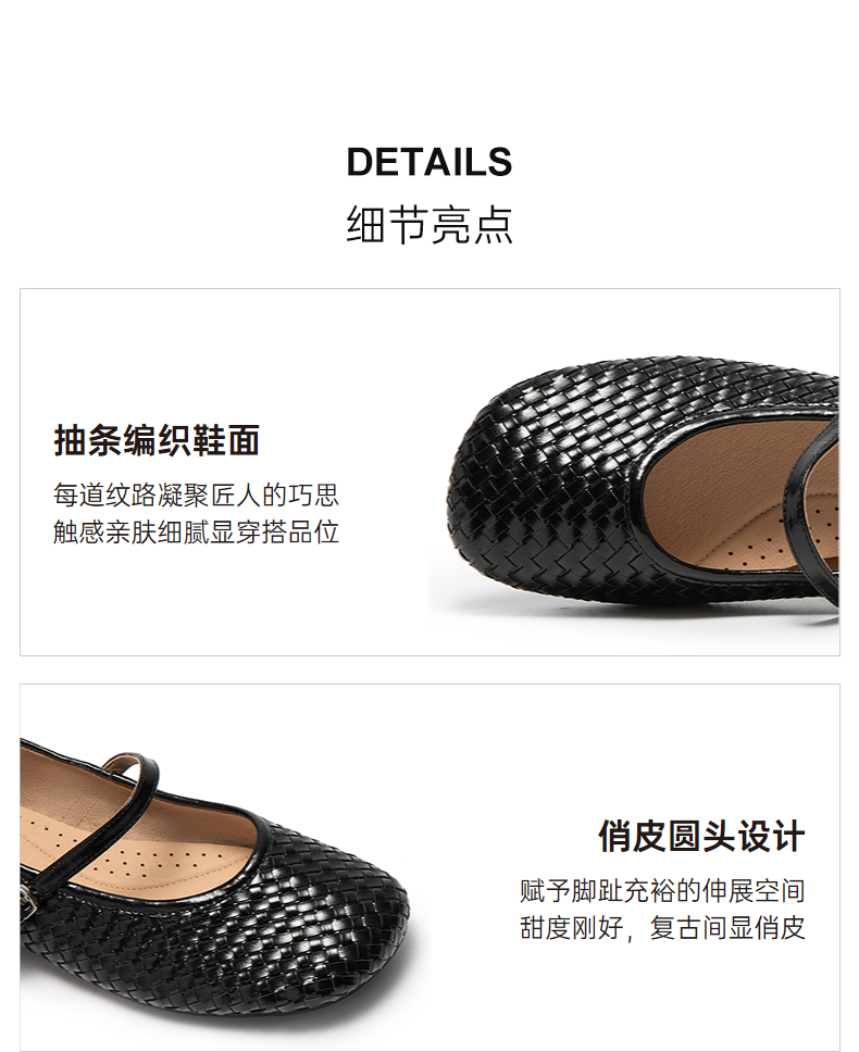千百度编织低跟平底玛丽珍鞋女小香风气质晚晚单鞋A25428432