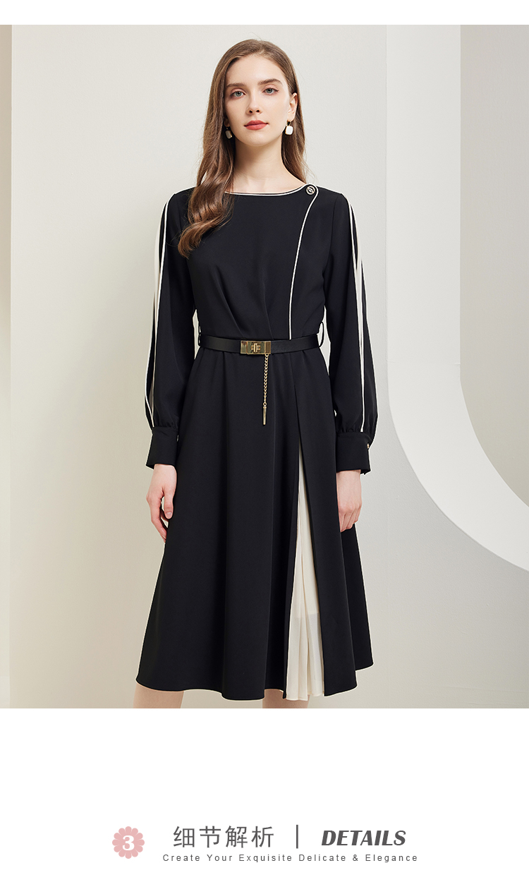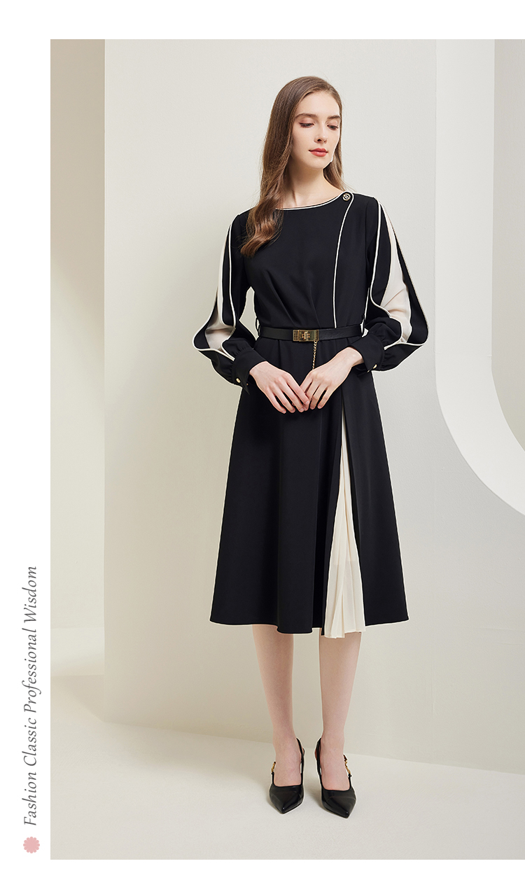 NG829斯尔丽瑟俪2023秋季新款A摆抛袖通勤款连衣裙