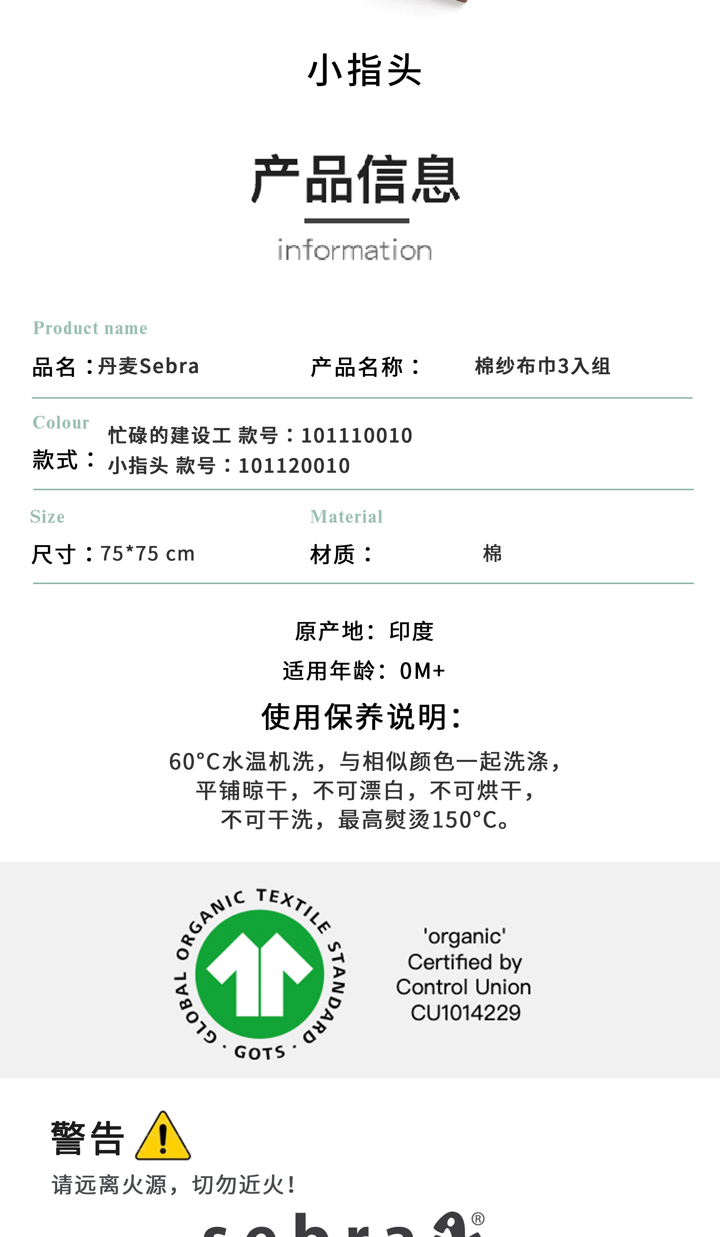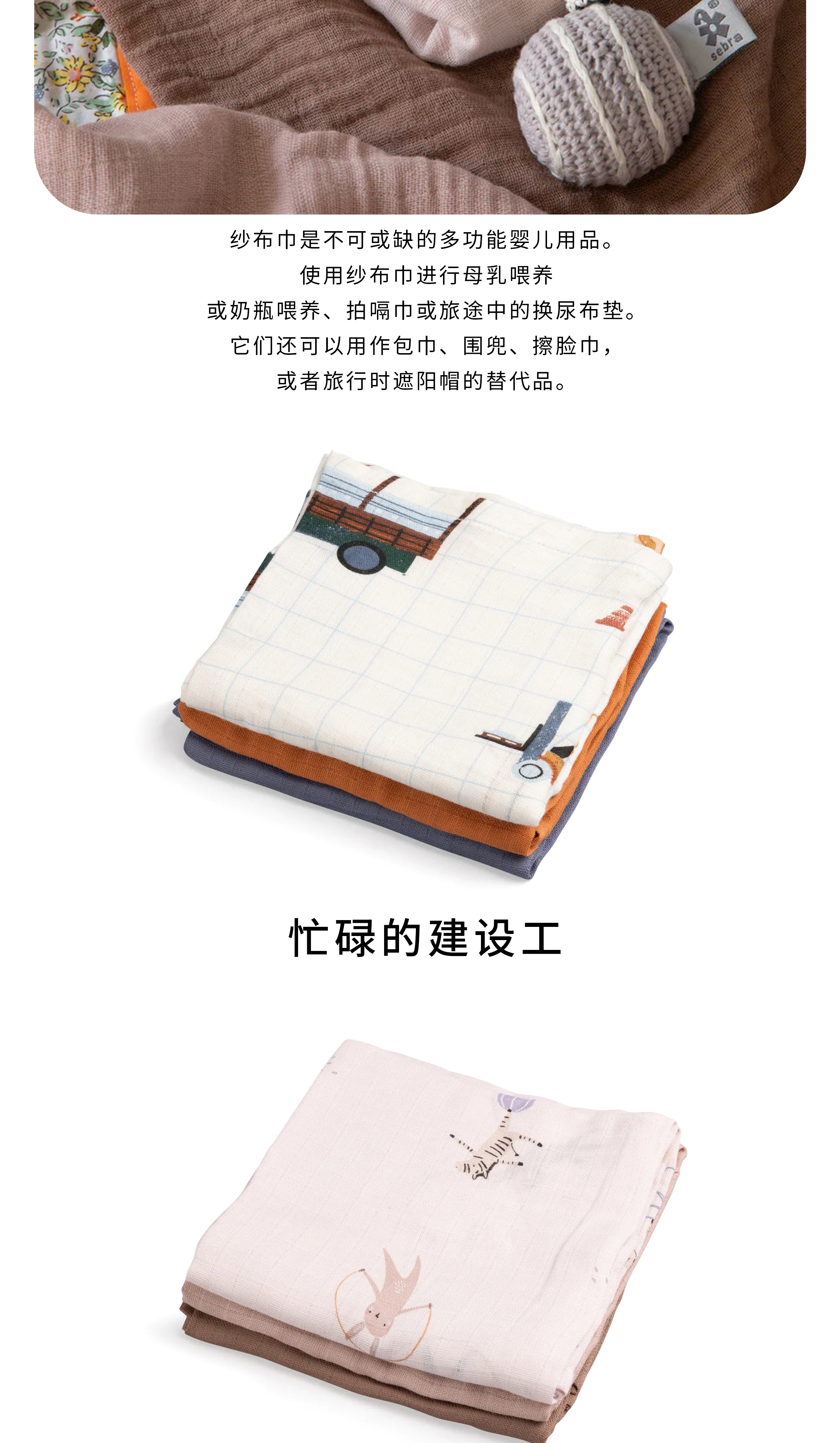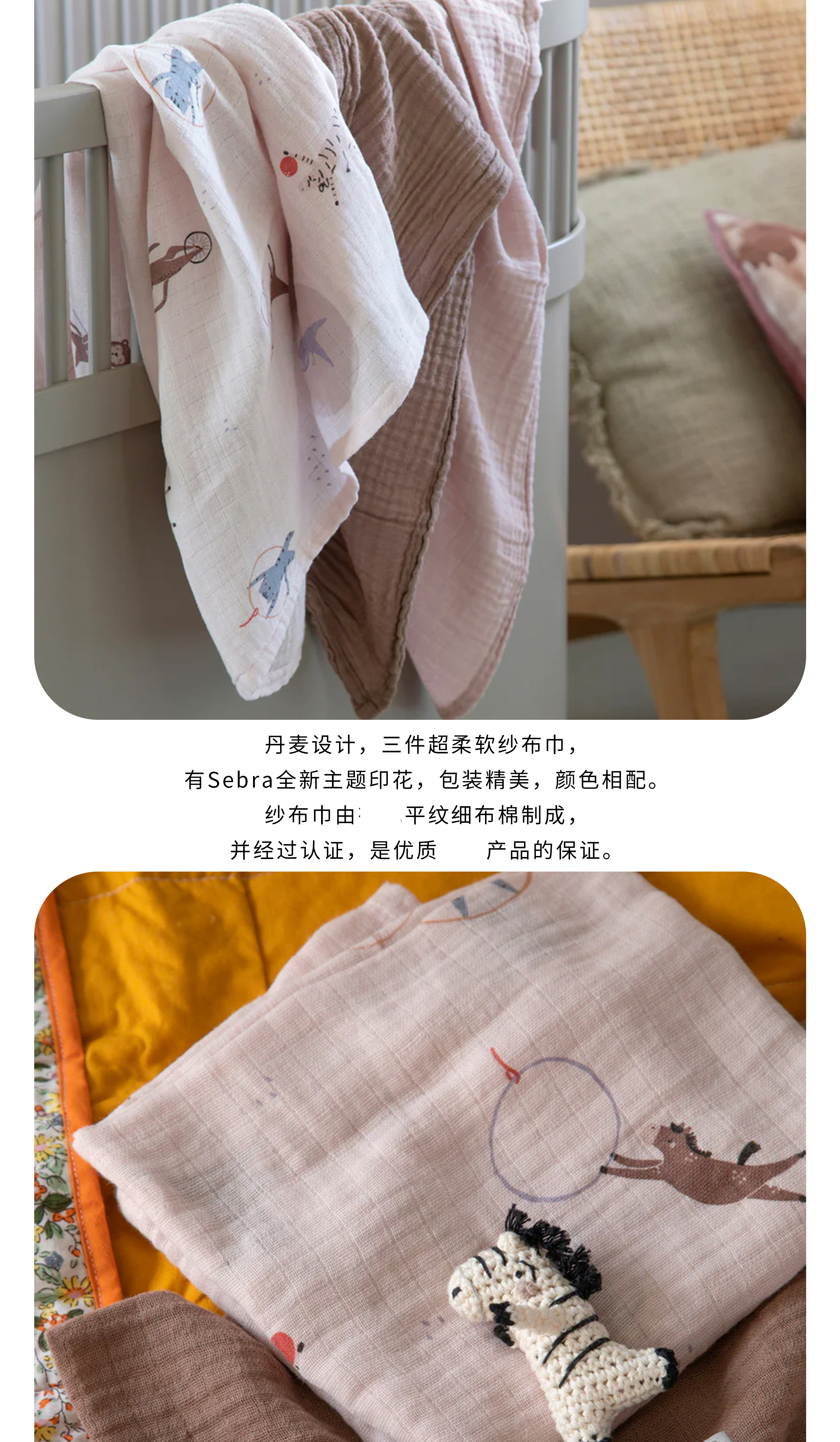 Sebra棉纱布巾3入组 宝宝婴儿包巾薄被包被抱被0+