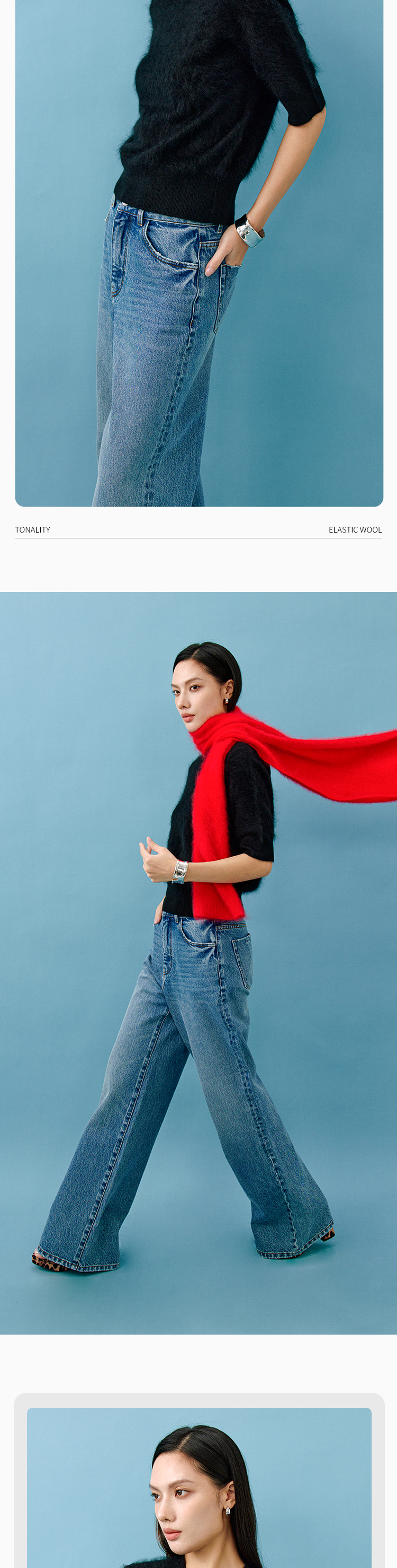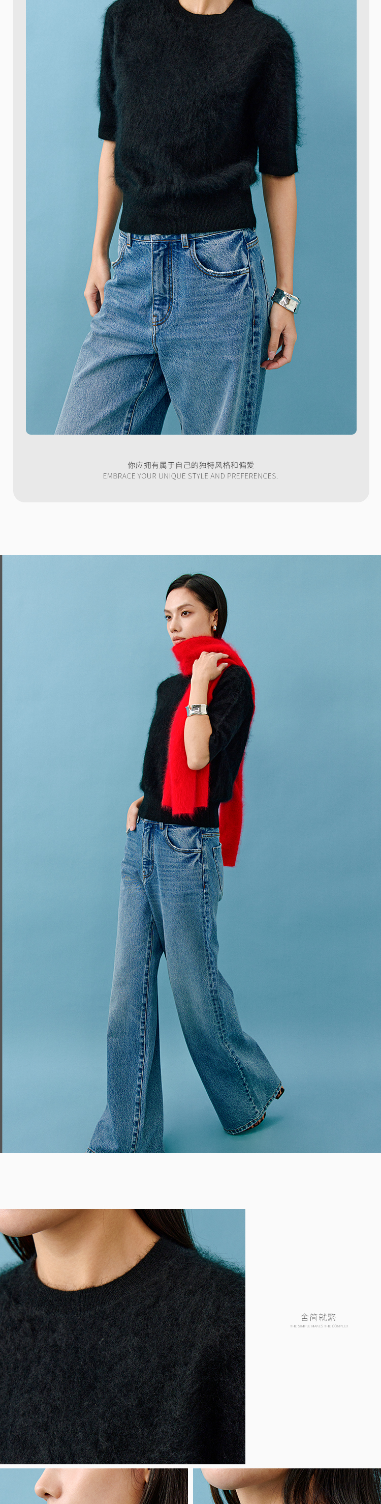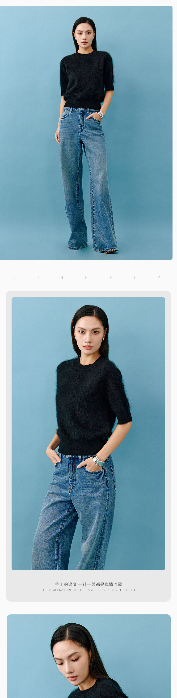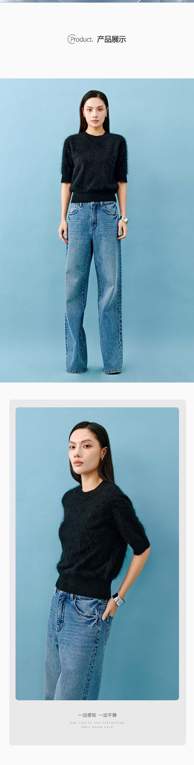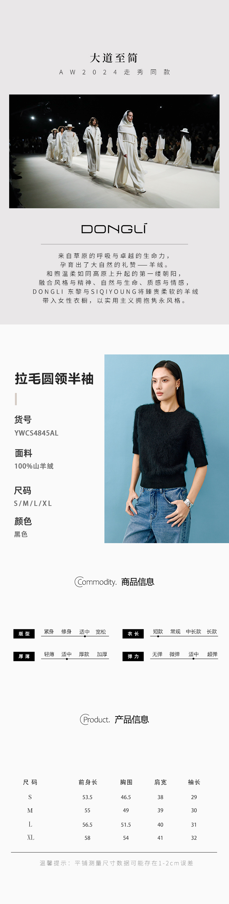 东黎 • 山羊绒女士秋冬拉毛绒时尚圆领半袖 4845