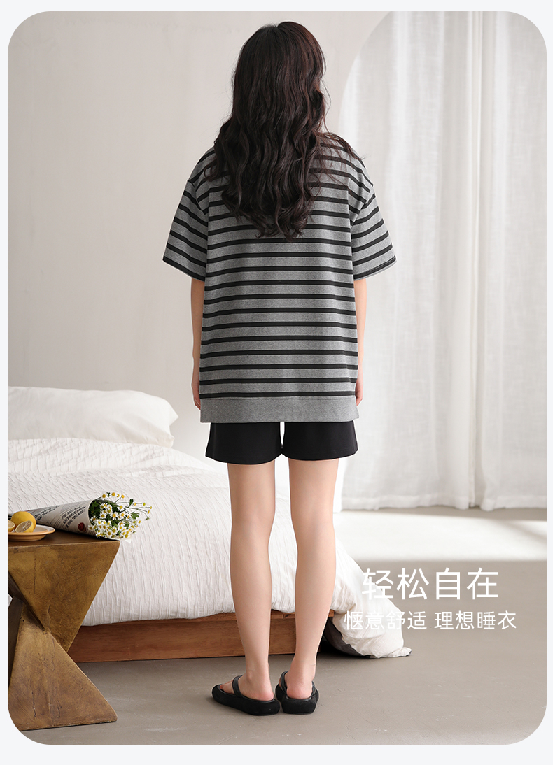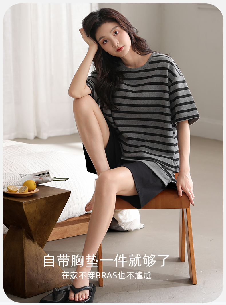 洁丽雅夏季新款女士家居服短袖短裤套装轻薄透气带胸垫可外穿睡衣