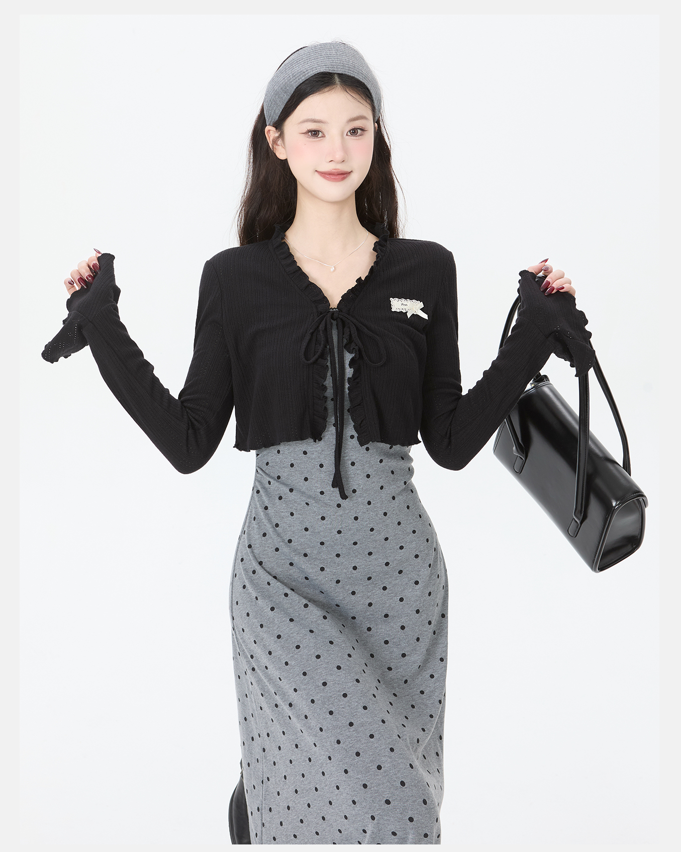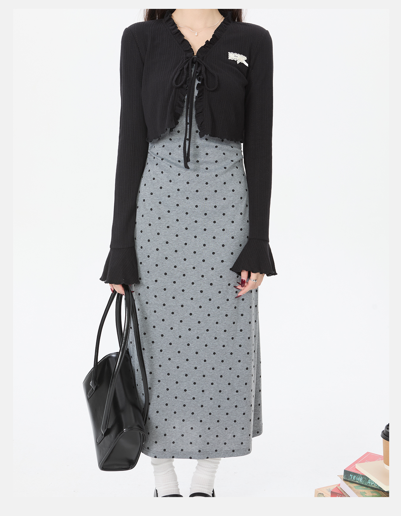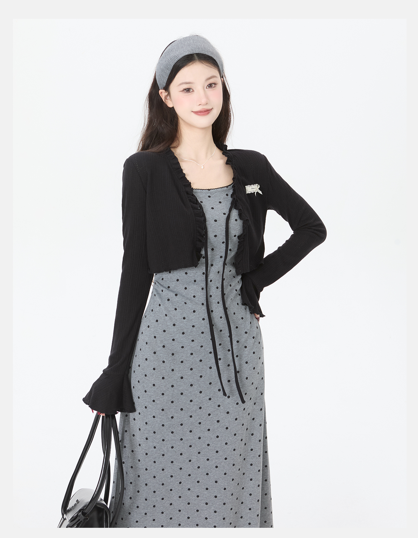 P&X设计师女装2026春季吊带裙优雅风套装长裙 826114113 黑/灰
