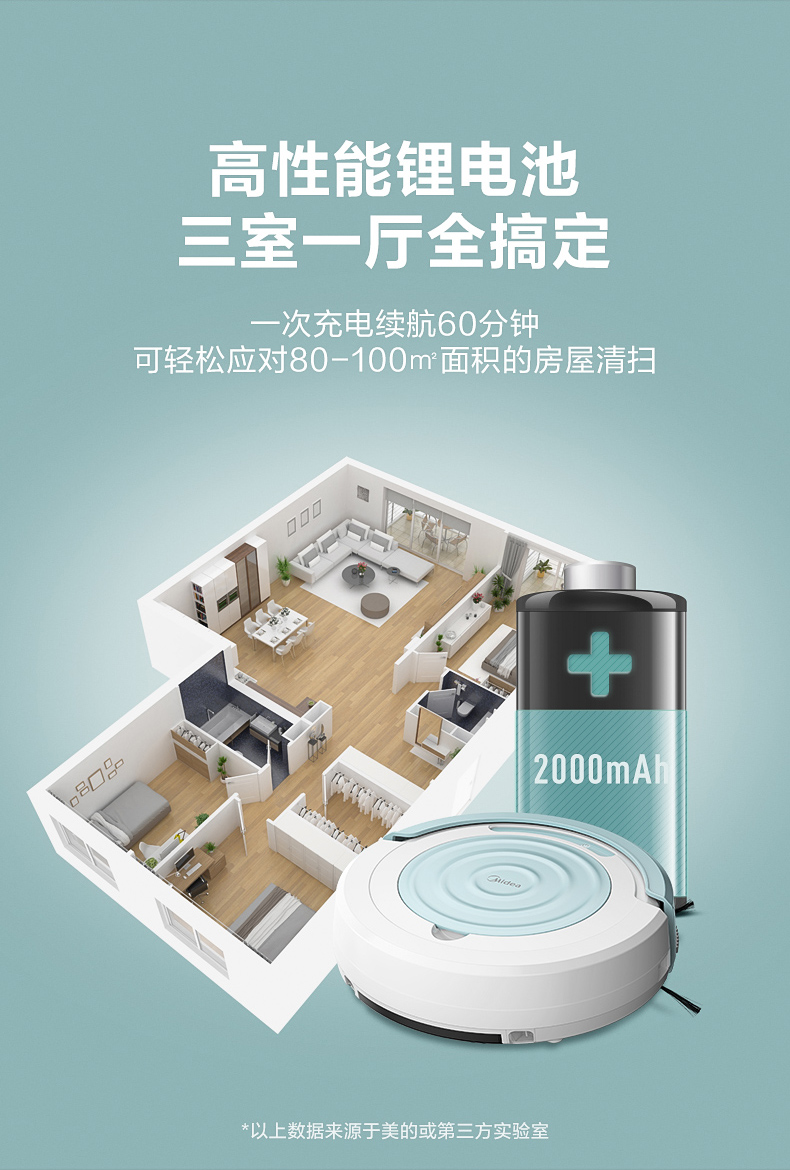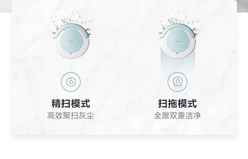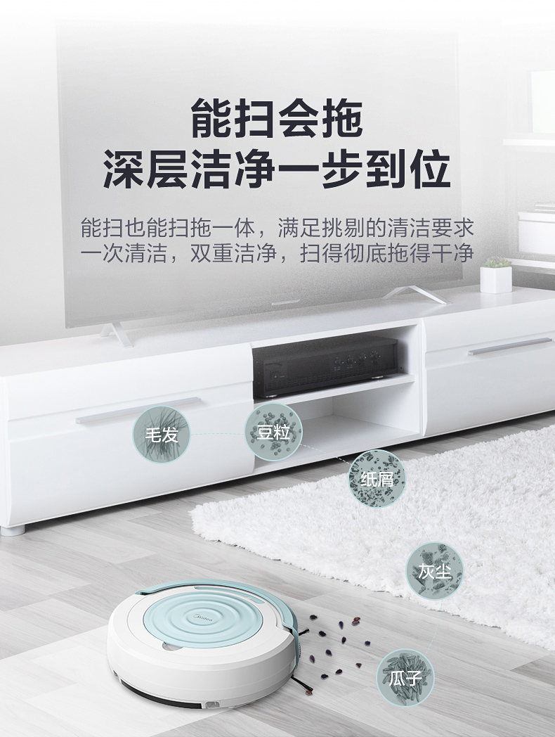 美的(Midea)扫地机器人R2TCN扫拖一体机环境感应真空吸口4种清扫模式