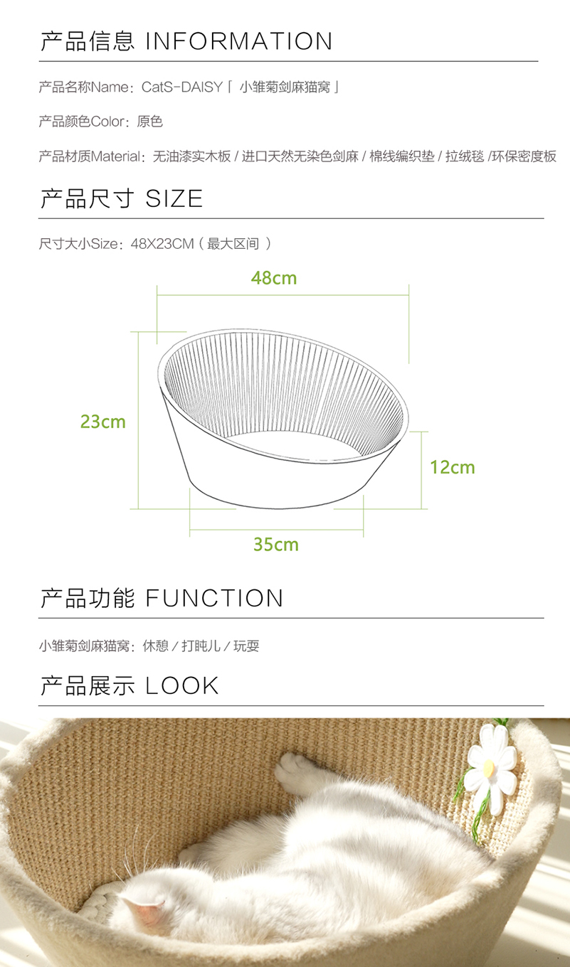 CatS猫家具 雏菊剑麻猫窝 可抓可躺超可爱